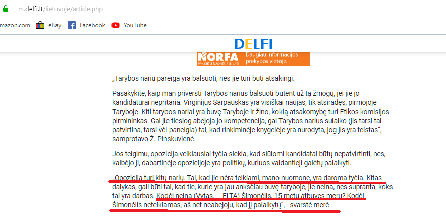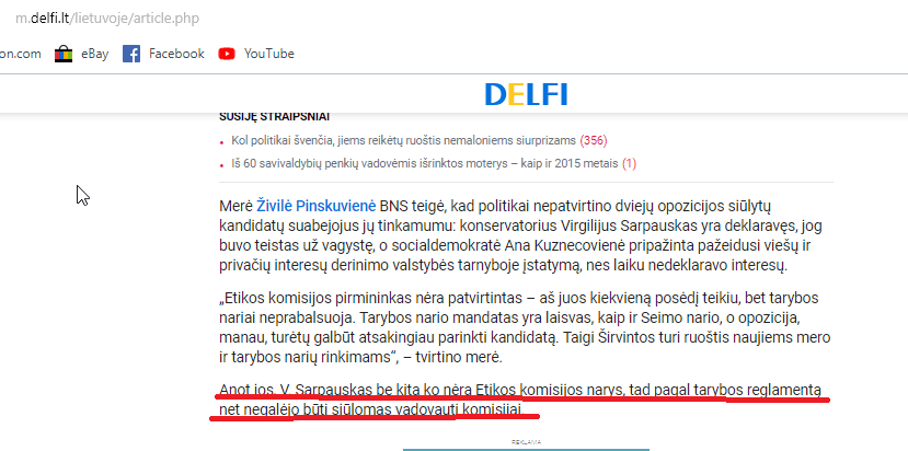 Tačiau ji stebuklingai „užmiršta“ tai, ką pati prieš kelias savaites priminė Tarybai – Etikos komisijos pirmininku gali tapti tik asmuo, esantis komisijos sudėtyje. Ir čia pat teigia, kad V.Sarpauskas nėra Etikos komisijos narys.
