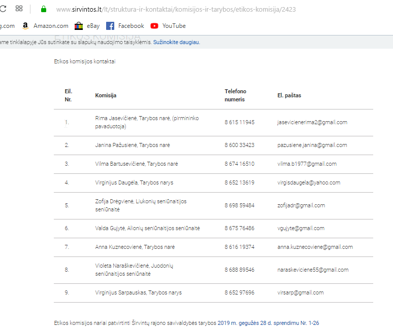 Skaitytojams primename, kad šių metų gegužės 26 dieną yra patvirtinta Etikos komisijos sudėtis: Violeta Naraškevičienė, Vaida Gujytė, Zofija Drėgvienė, Janina Pažusienė, Virginijus Daugėla, Rima Jasevičienė, Vilma Bartusevičienė, Anna Kuznecovienė ir Virginijus Sarpauskas.