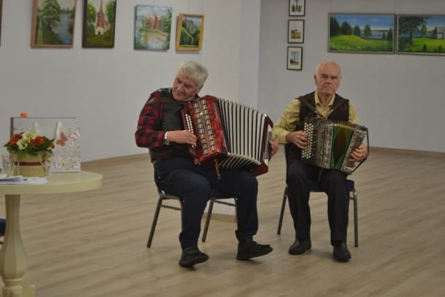 Armonikininkai Jonas Romaška ir Pranas Vrubliauskas neleido niekam nuobodžiauti ir rimtas kalbas paįvairino smagia muzika.