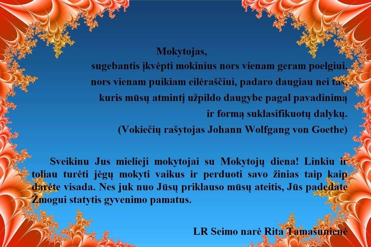 Linkėjimas Tarptautinės mokytojų dienos proga