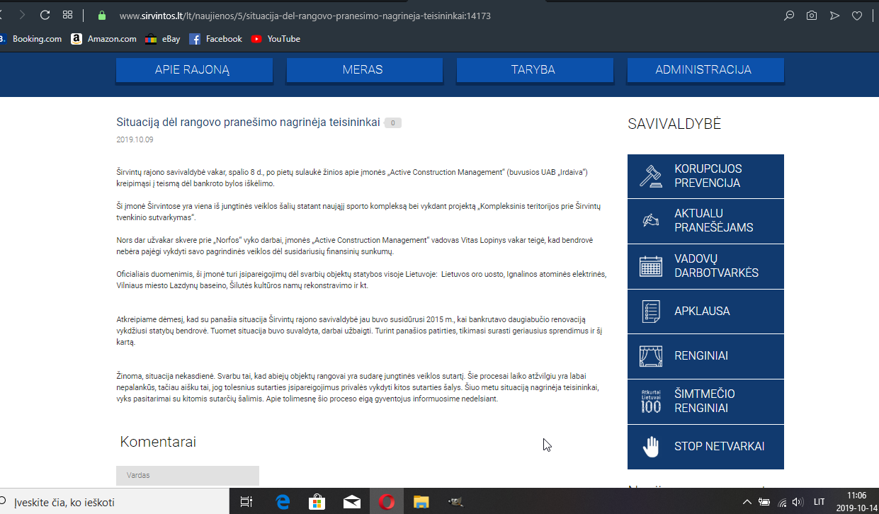 Visa žiniasklaida sumirgėjo informacija, kad „Active Construction Management“ (buvusi UAB „Irdaiva“) kreipėsi į teismą dėl bankroto bylos iškėlimo. Ši įmonė Širvintose vykdo „Sporto komplekso Širvintų mieste įkūrimas“ statybos rangos darbus ir projekto „Kompleksinis teritorijos prie Širvintų tvenkinio sutvarkymas“ rangos darbus. Suprantama, kad širvintiškiai laukia ir baseino, ir sporto komplekso. Jau dabar kelią trumpina naujuoju tiltu, kuris dar nėra priduotas ir logiška, kad dar nėra saugus naudojimui. Juk patogu ir greita Širvintų paplūdimį pasiekti. Va ir naujai sutvarkytoje aikštėje prie „Intos” jau šventės vyksta, nors statybos dar nėra baigtos. Į baseiną nuo žiemos vanduo leidžiamas, tad tikėtina, kad gal netolimoje ateityje ir lankytojams bus durys atvertos.