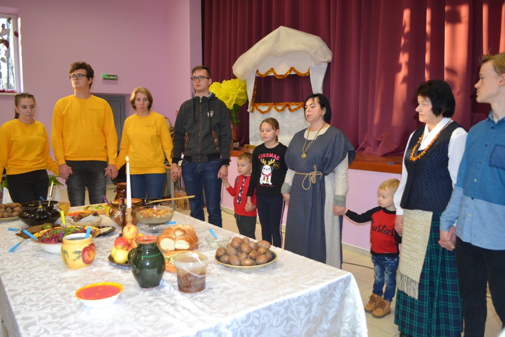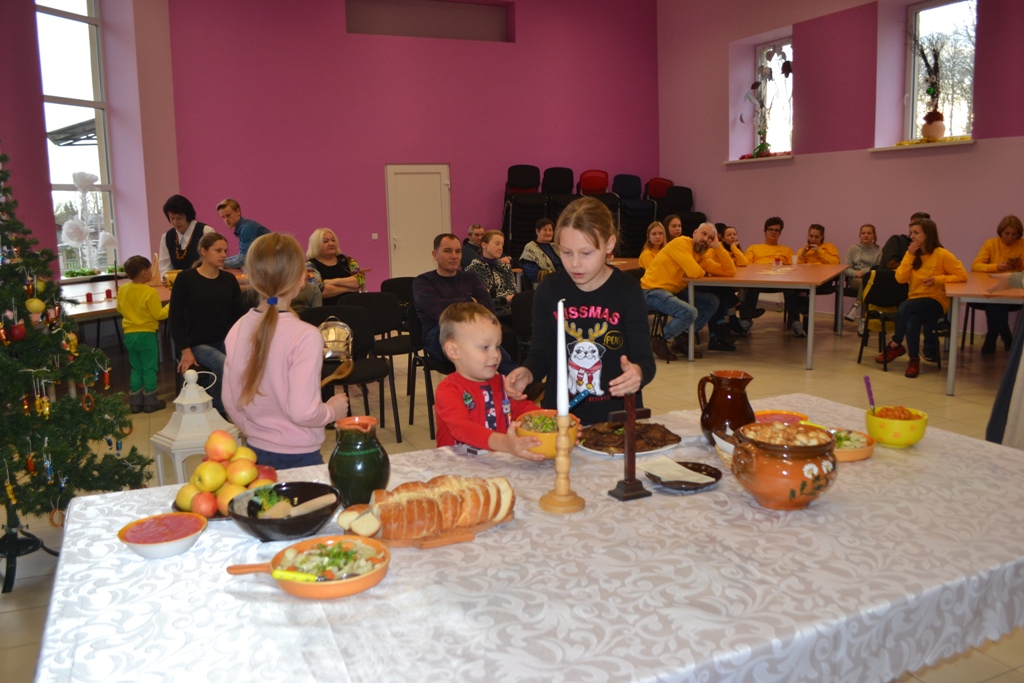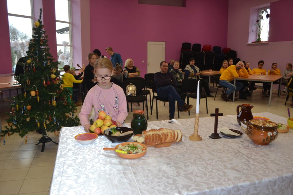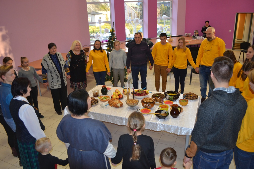 Vėliau visi stojo aplink stalą, susikibo rankomis. Kadangi svečiai iš Druskininkų yra katalikiško vaikų dienos centro nariai, jie sugiedojo gražią dainą, skirtą maistui palaiminti. Visi kartu ragavo tradicinių Kūčių patiekalų, kalbėjosi apie šventes, tradicijas, dalijosi patirtimi, kokias veiklas ir projektus vykdo, kaip sekasi, kaip įveikia vienus ar kitus sunkumus. Druskininkiečiai kvietė Kiauklių bendruomenę atvykti pas juos į svečius. Štai taip gražiai užsimezgusi nauja draugystė tikėtina tęsis ir toliau. Juk Kalėdų laukimas – stebuklų metas…