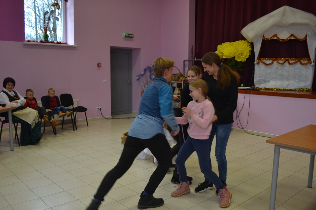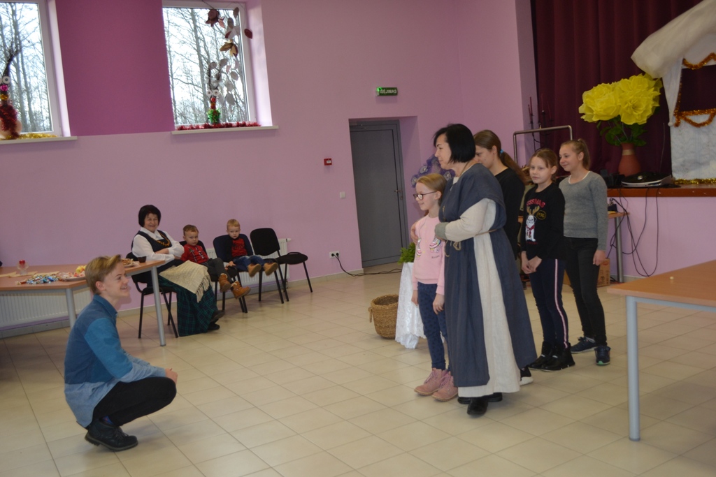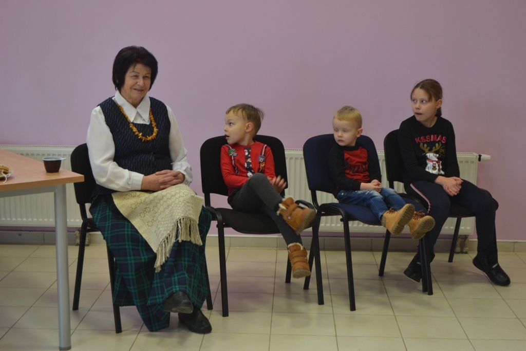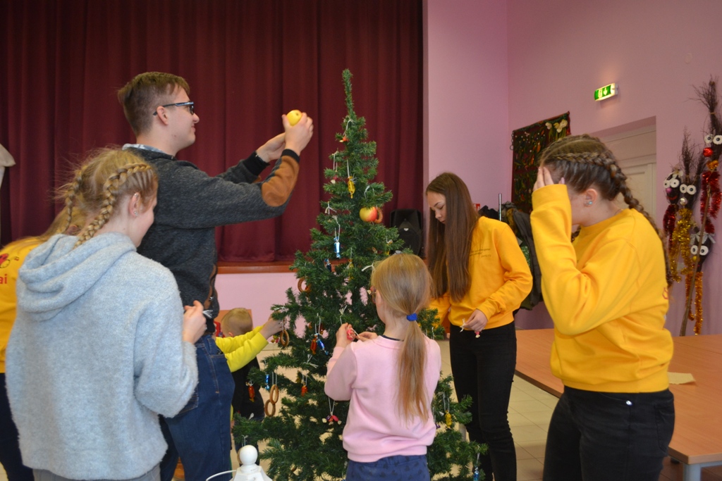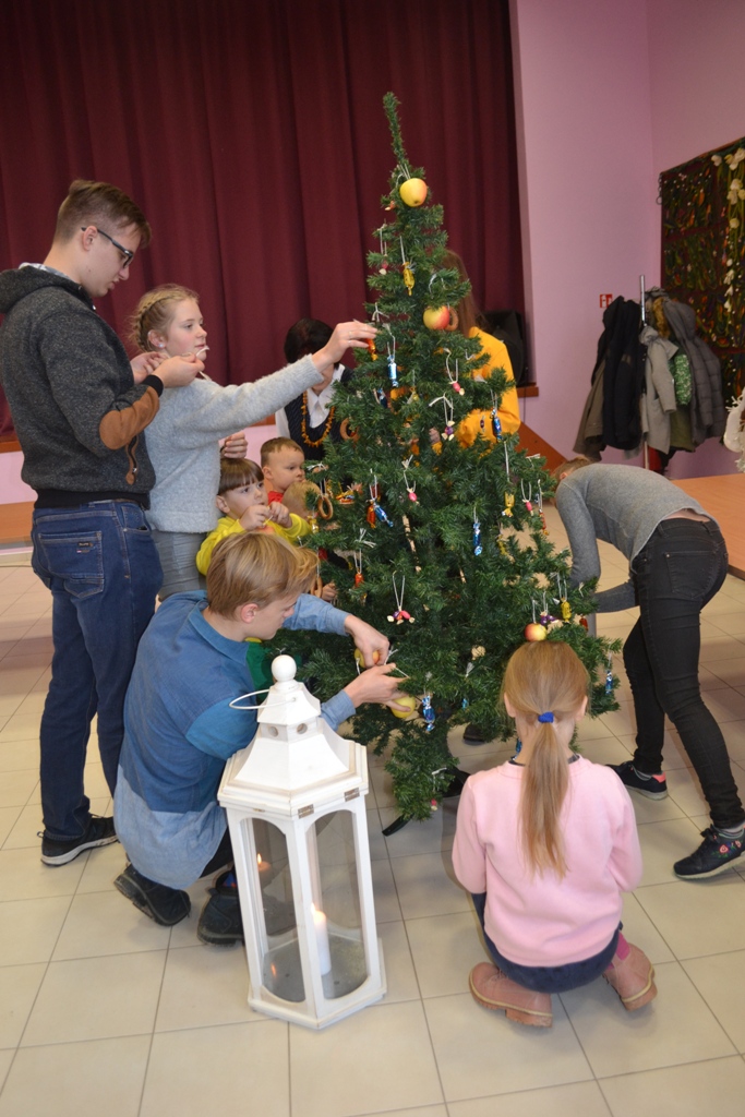 Vaikai ypač džiugiai priėmė kvietimą papuošti eglutę. Ant eglutės buvo kabinami riestainiai, sausainiai, saldainiai ir obuoliai. Visų nuostabai – eglutė atrodė išties graži. Asta papasakojo, kad vaikystėje ją brolis pamokino išlukštenti saldainį ir į jo vietą suvynioti duonos. Tai gaudavo barti išdykėlė už tokią išdaigą…