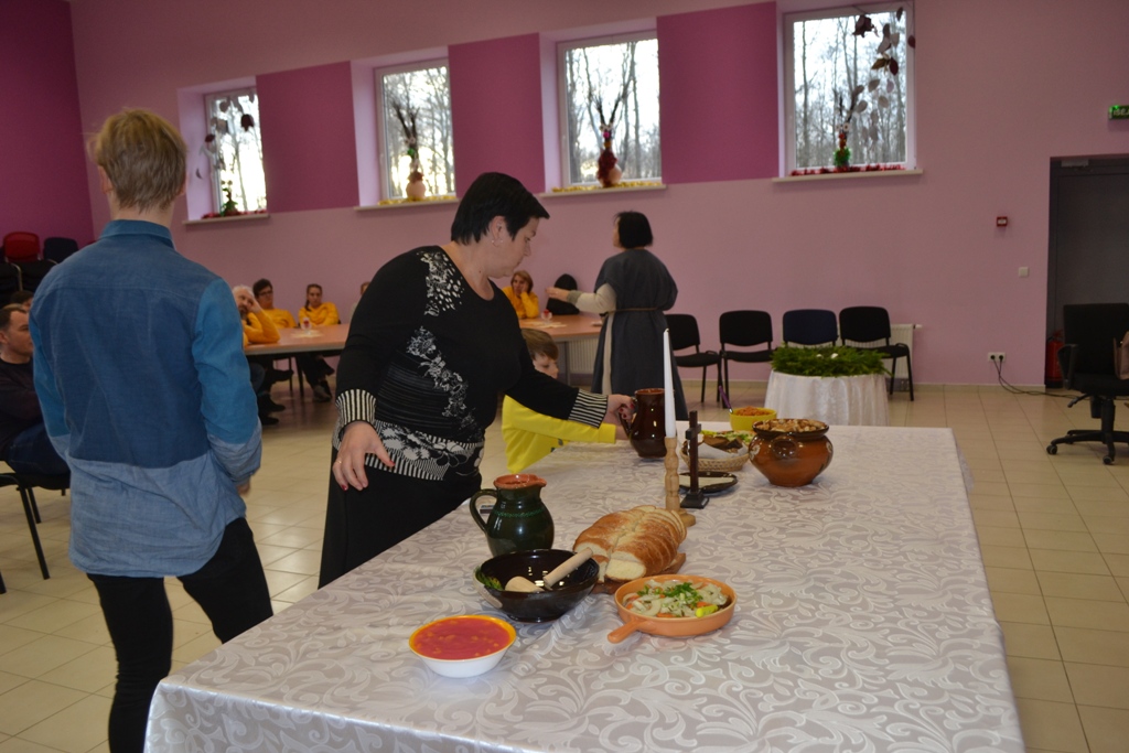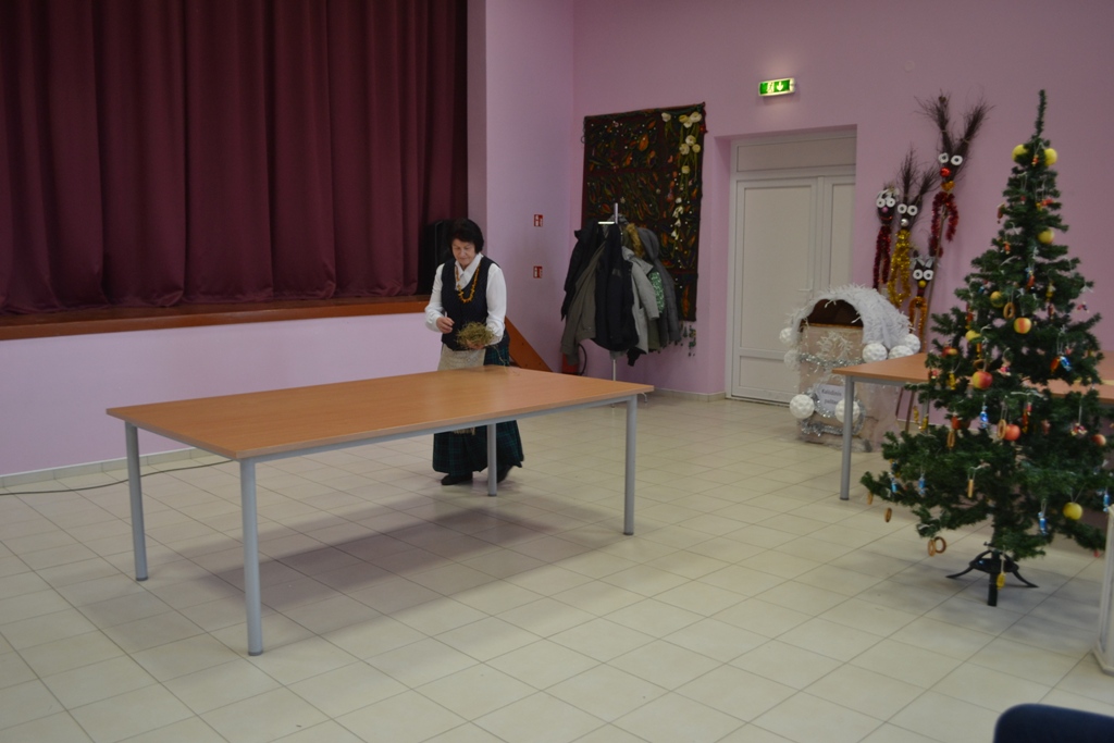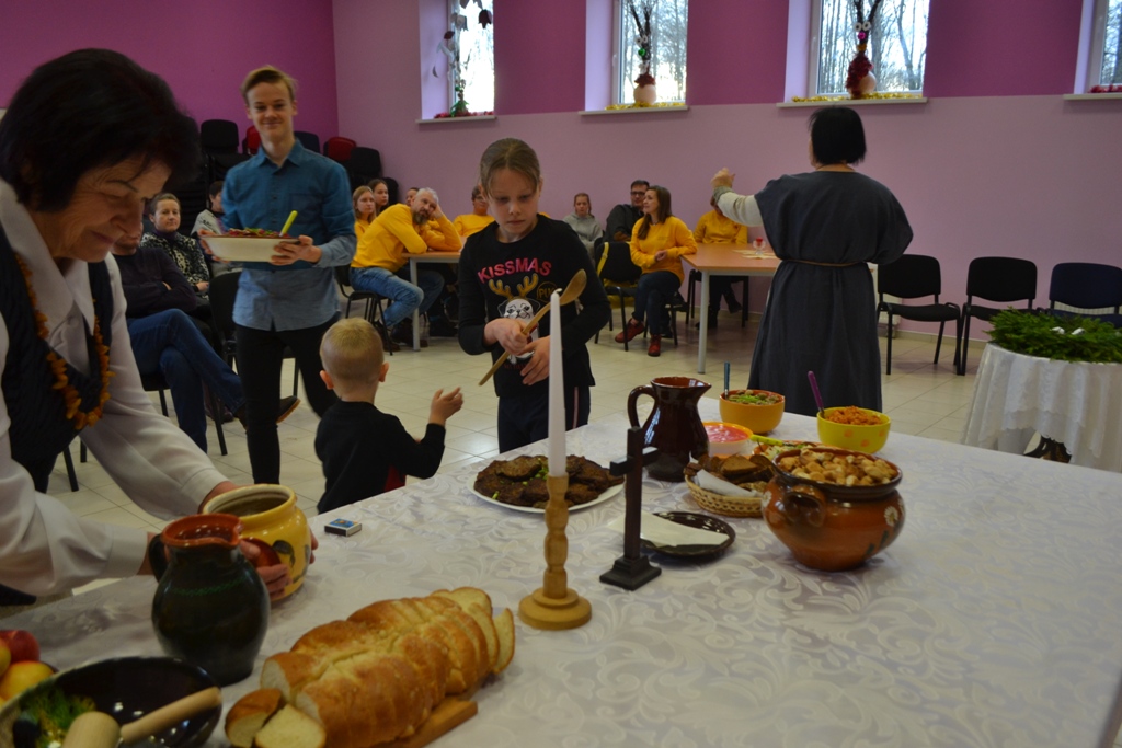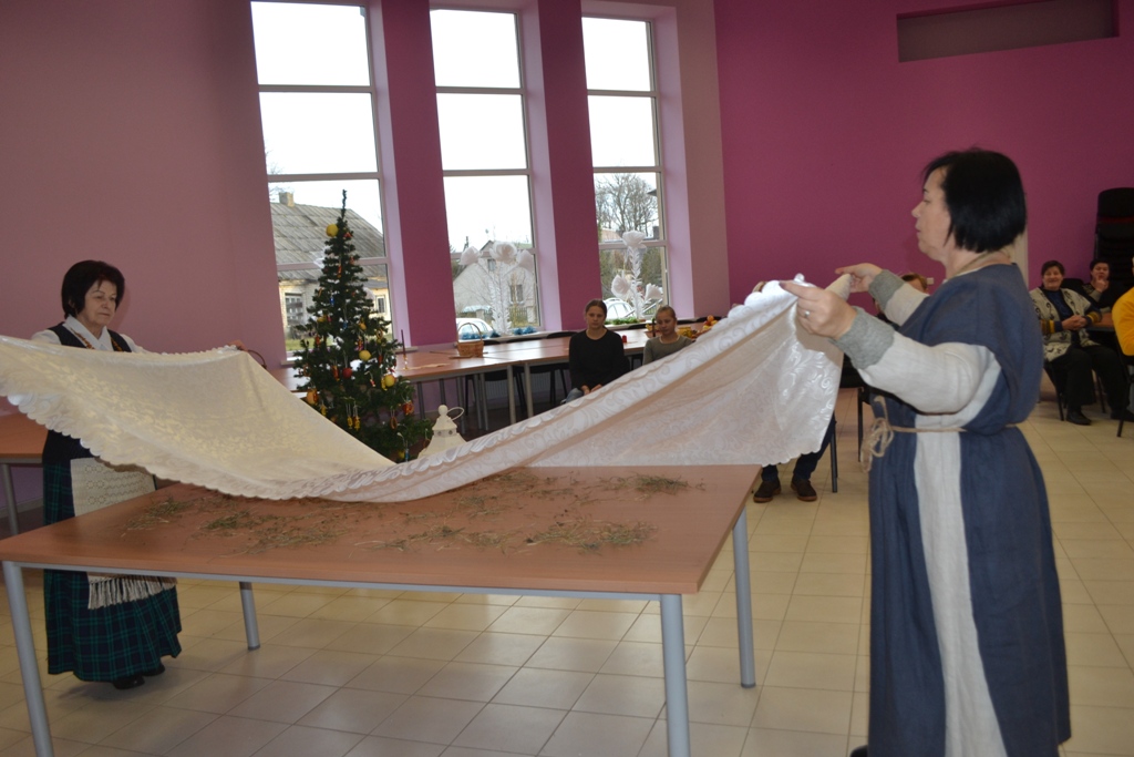 Astai pasakojant Kūčių stalo dengimo papročius, patiekalų reikšmę ir jų receptus, Kiauklių kultūros namų teatriuko vaikai su seniūnaite Danute čia pat dengė stalą. Svečiai pasidalijo ir savo krašto Kūčių patiekalų receptais. Vyresnes merginas ypač domino Kūčių žaidimai. Juk dauguma jų skirti sužinoti, ar naujais metais ištekėsi.