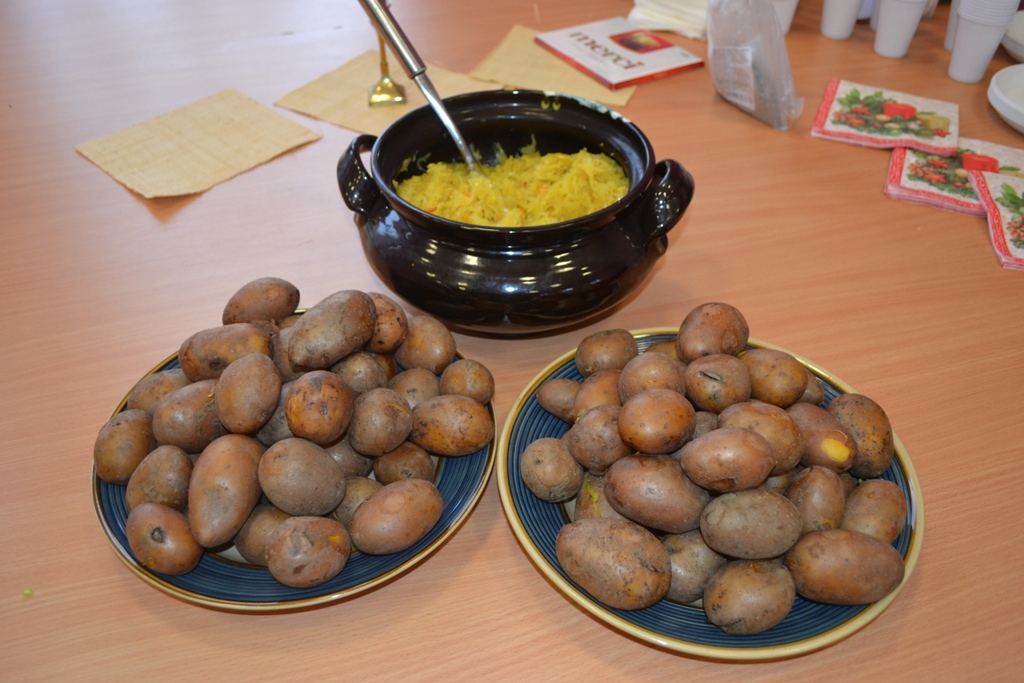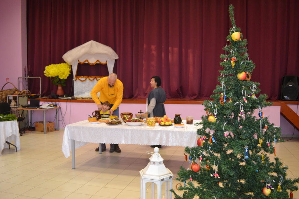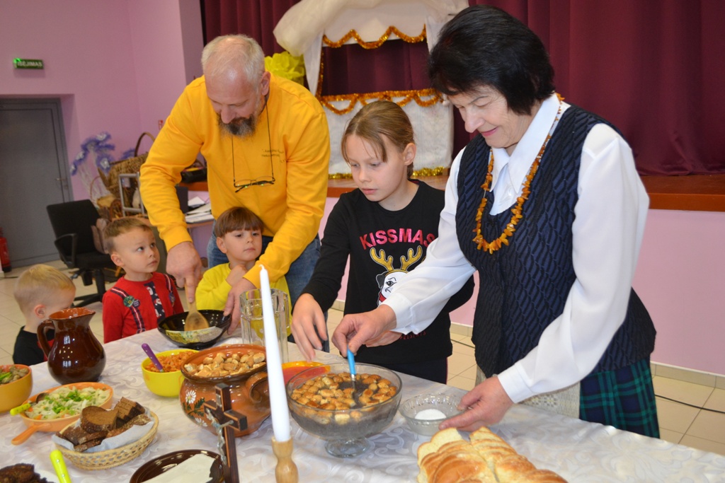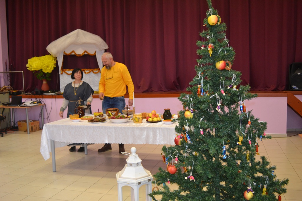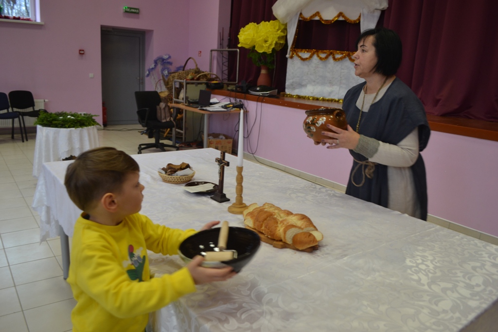 Astai pasakojant Kūčių stalo dengimo papročius, patiekalų reikšmę ir jų receptus, Kiauklių kultūros namų teatriuko vaikai su seniūnaite Danute čia pat dengė stalą. Svečiai pasidalijo ir savo krašto Kūčių patiekalų receptais. Vyresnes merginas ypač domino Kūčių žaidimai. Juk dauguma jų skirti sužinoti, ar naujais metais ištekėsi.