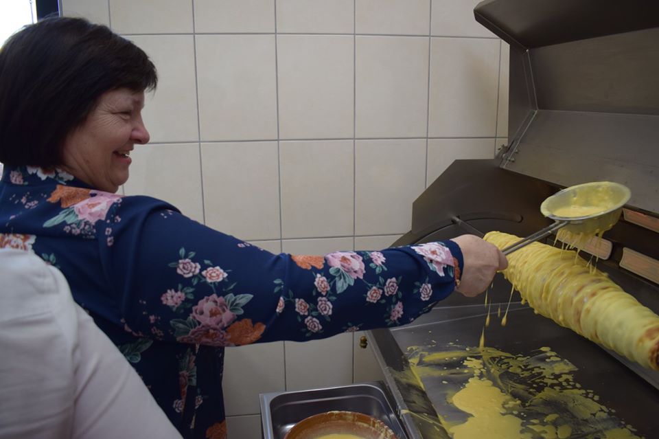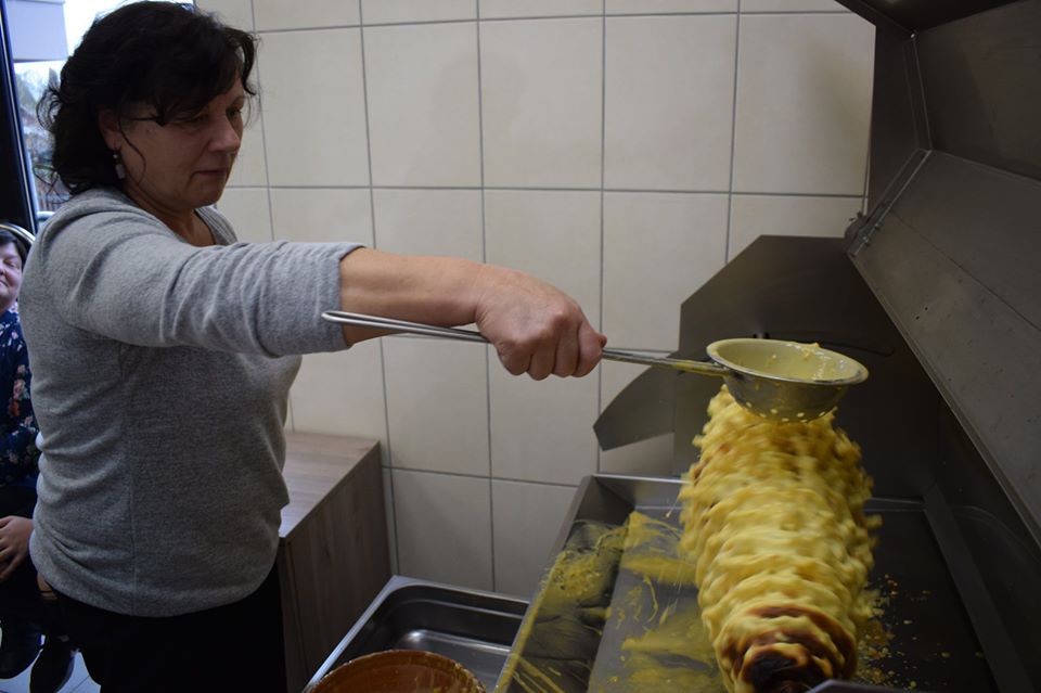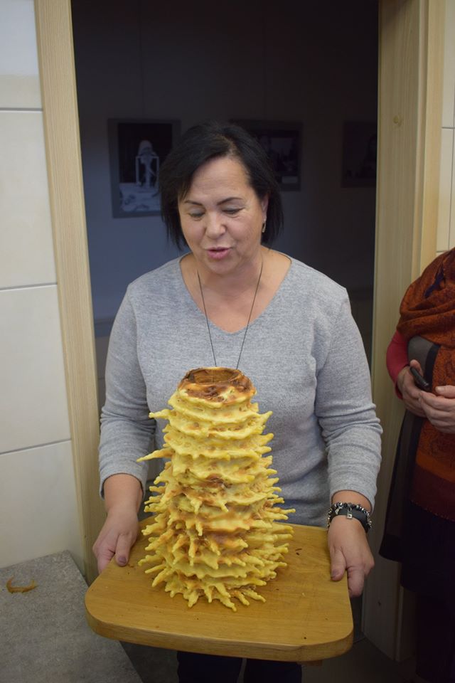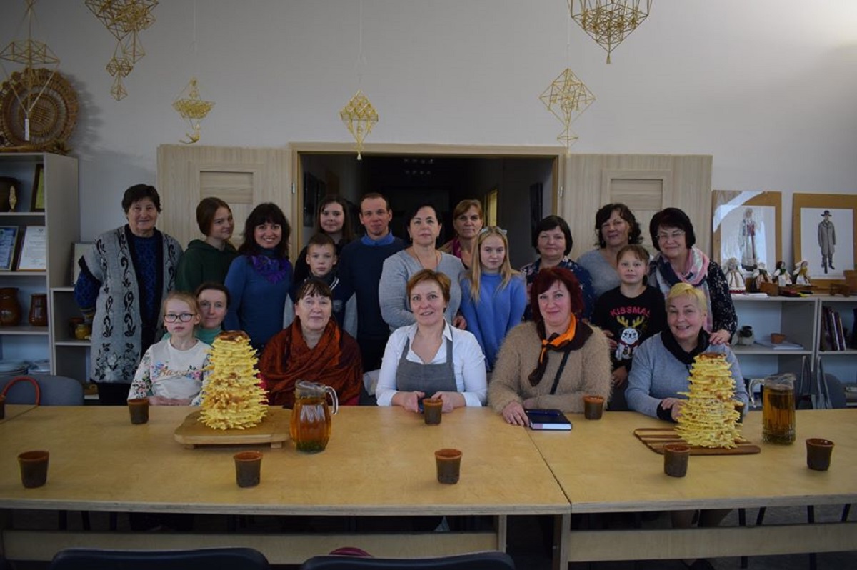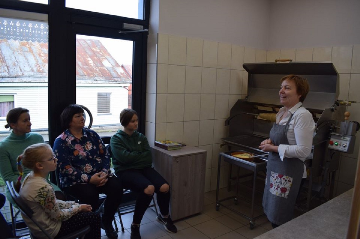 Pirmiausia keliautojai vyko į Žąslius. Žąslių tradicinių amatų centre dalyvavo akočio edukacijoje, kurią vedė Onutė Remeikaitė – Raudeliūnienė. Sertifikuota amatininkė ir gražiai mus sutiko, ir papasakojo apie šio amatų centro veiklą. Bendruomenės nariai su dideliu susidomėjimu stebėjo šakočio kepimo procesą, o kai jiems buvo paisūlyta pabandyti patiems, visi mielai išbandė šią veiklą. Kiekvienas po samtuką tešlos užpylė ir štai – šakotis didžiausias pavyko. Perpjovus jį perpus džiaugėmės savo drabo rezultatu ir gardžiai suvalgėme.