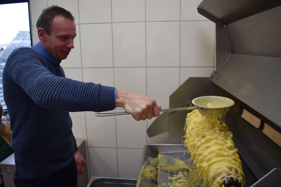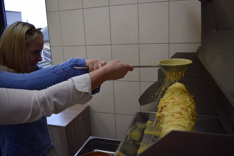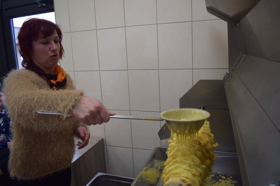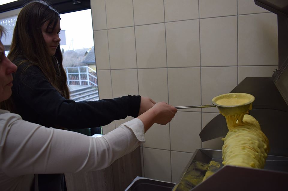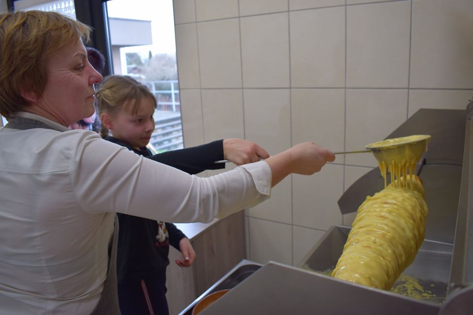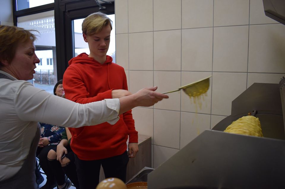 Pirmiausia keliautojai vyko į Žąslius. Žąslių tradicinių amatų centre dalyvavo akočio edukacijoje, kurią vedė Onutė Remeikaitė – Raudeliūnienė. Sertifikuota amatininkė ir gražiai mus sutiko, ir papasakojo apie šio amatų centro veiklą. Bendruomenės nariai su dideliu susidomėjimu stebėjo šakočio kepimo procesą, o kai jiems buvo paisūlyta pabandyti patiems, visi mielai išbandė šią veiklą. Kiekvienas po samtuką tešlos užpylė ir štai – šakotis didžiausias pavyko. Perpjovus jį perpus džiaugėmės savo drabo rezultatu ir gardžiai suvalgėme.