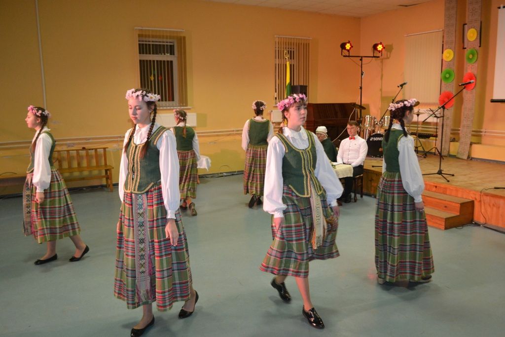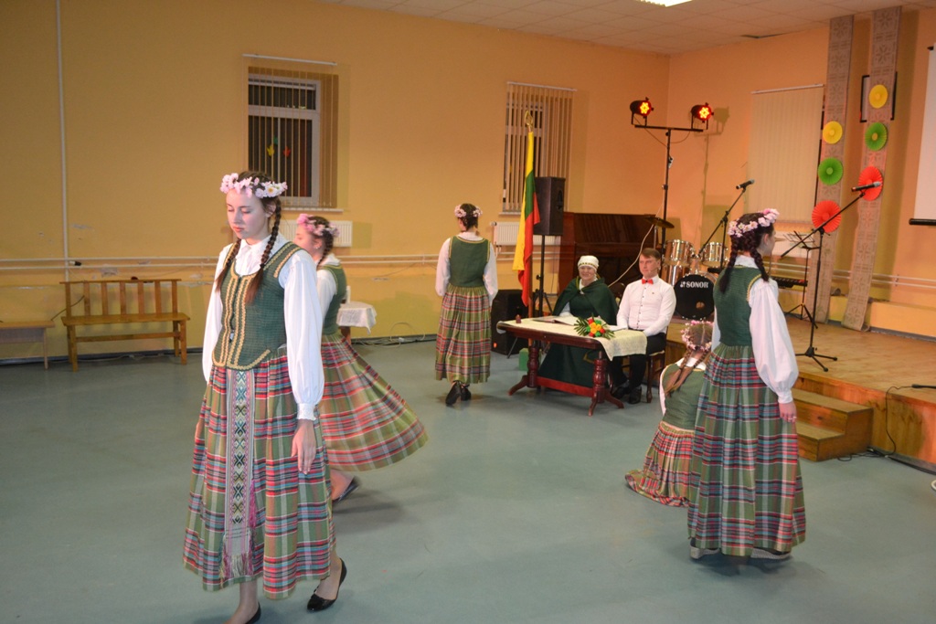 Įnešus į salę vėliavą, sudainavus Lietuvos himną imta austi dainų ir šokių juostą. Ją pradėjo merginų šokis „Pyniau juostą“, kurį atliko Musninkų Alfonso Petrulio tautinių šokių kolektyvas „Kadagėlis“ (vad. Daiva Balandienė).