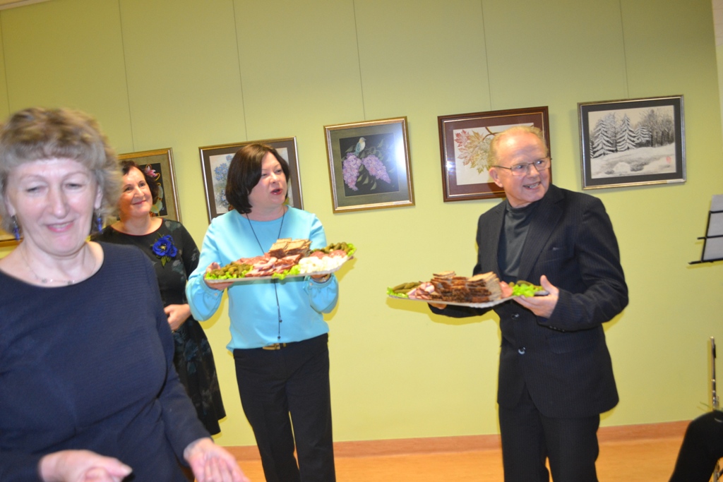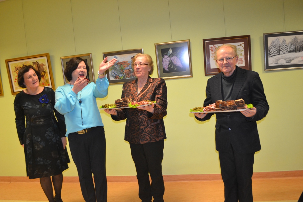 Kadangi parodos atidarymas sutapo su Užgavėnėmis, bibliotekos kolektyvas „Bočiams” dovanojo du didžiulius padėklus vaišių.