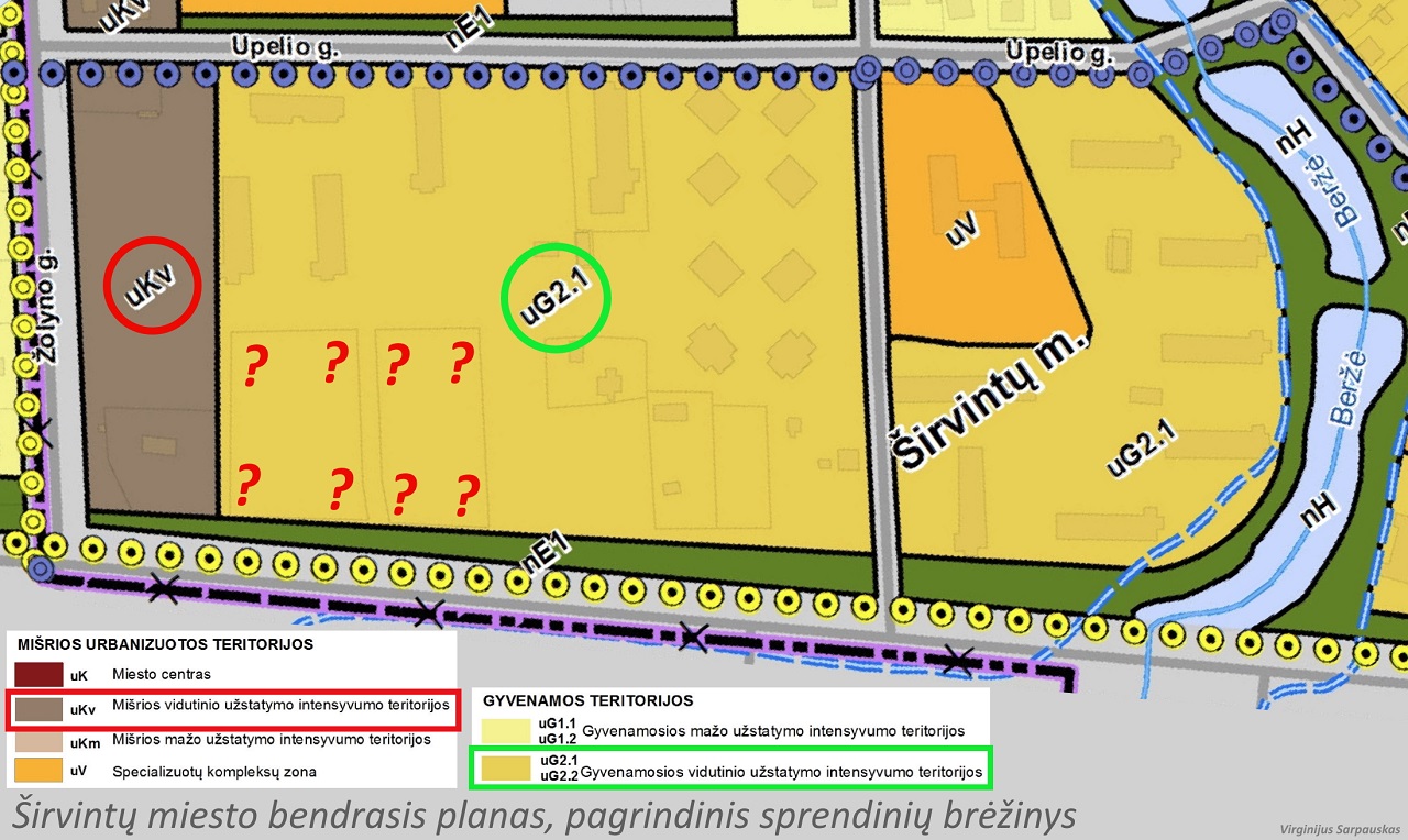 - Šiandien, ruošdamasis straipsnio rašymui, nagrinėjau Širvintų miesto bendrąjį planą. Pagrindinių sprendinių brėžinyje radau štai tokią informaciją: teritorija, kuri yra nuo Upelio gatvės iki Plento gatvės, ir nuo Zibalų gatvės iki pat daugiabučio namo Nr. 15 yra „uKv“ paskirties. Kitaip sakant, ši teritorija nėra gyvenamosios ar kokios nors rekreacinės paskirties, jei gerai suprantu, tai ji yra komercinės veiklos. „Mišrios vidutinio užstatymo intensyvumo teritorijos“. Vadinasi, minimoje teritorijoje atsiras ne tik prekybos centras, bet galimai dar daugiau ne gyvenamosios paskirties objektų.