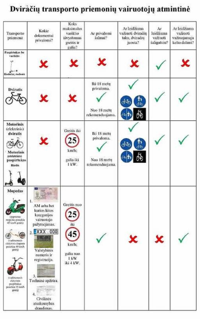 Dviračių, elektrinių paspirtukų dalyvavimą eisme, kaip ir visą eismo keliais tvarką Lietuvos Respublikoje nustato Kelių eismo taisyklės, kurias pamišdami galite skaudžiai nukentėti!