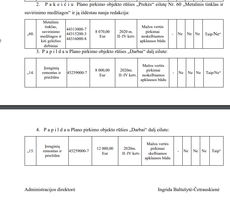 Štai šių metų sausio 6 d. paskelbtas pirmasis nerastojo plano papildymas. Jame numatyti keli pirkiniai. Kiti pirkiniai papildyti kitais administracijos įsakymais. (Visų jų ekrano nuotraukas rasite po straipsniu).