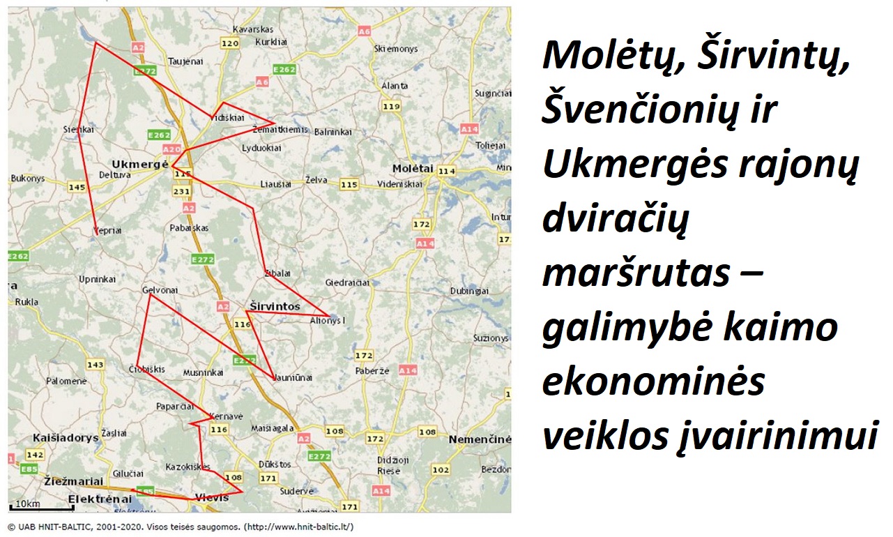 Šis projektas yra tęsinys 2014 metais Ukmergės rajono Vietos veiklos grupės (VVG) įgyvendinto projekto „Molėtų, Širvintų, Švenčionių ir Ukmergės rajonų dviračių maršrutas – galimybė kaimo ekonominės veiklos įvairinimui“. Projekto metu buvo sukurtas patrauklus šiuos rajonus jungiantis turizmo maršrutas, tačiau maršrute esantys lankytini objektai nebuvo paženklinti, kadangi projekte tam nebuvo numatytas finansavimas. Kad šio projekto metu kruopščiai parengtas dviračių maršrutas būtų mėgstamas ir aktyviai juo keliaujama, jį buvo būtina toliau tęsti. Vienas iš tęstiniam projektui iškeltų uždavinių – užtikrinti juo keliaujančių turistų informuotumą. Taip pat labai svarbu sudaryti sąlygas kuo platesnei visuomenės daliai pažinti lankytinas vietas, pritaikant maršrutą žmonėms su regos negalia, įrengiant šiai tikslinei grupei pritaikytą informavimo infrastruktūrą.