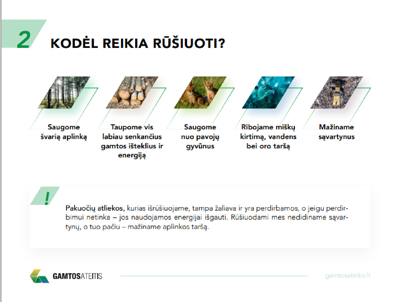Primename, kad pakuočių atliekų surinkimas ir sutvarkymas – priešingai nei mišriųjų atliekų tvarkymo paslaugos – gyventojams nieko nekainuoja, tačiau kitomis atliekomis užteršta pakuočių atliekų žaliava tampa bevertė ir šių atliekų surinkimas bei sutvarkymas šias paslaugas teikiančioms įmonėms nesukuria jokių papildomų pajamų, arba dar papildomai kainuoja – kai už netinkamų atliekų, rastų tarp pakuočių, utilizavimą turi susimokėti kitoms įmonėms.