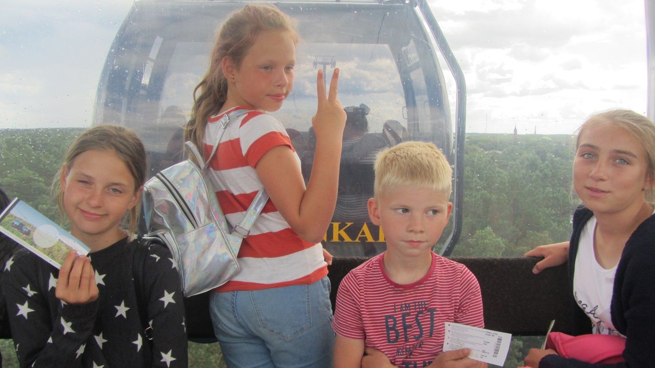 Šiek tiek užvalgę, keliaujama toliau. O toliau laukė įspūdingas pasivažinėjimas Lyno keliu. Tai vienintelis Lietuvoje keleivinis lyninis keltuvas, veikiantis Druskininkuose ir viena iš ekologinių transporto rūšių, kuri neteršia aplinkos ir yra pramoga vaikams. 1,16 km atstumą 45 metrų aukštyje „nuskraidina“ per 7,5 minutes. Kelionės metu pro keltuvo langus, keliautojai išvydo įspūdingus Druskininkų miškus, Nemuną ir nuostabią miesto panoramą. Vaikų susižavėjimui nebuvo ribų. Gerardas ir Radomiras vis klausinėjo, kaip veikia šis prietaisas, o Veronika klausinėjo ar nenukrisime. Kai kuriems vaikams buvo baisu, bet jie vis vien norėjo keltis šiuo lynu dar kartą.