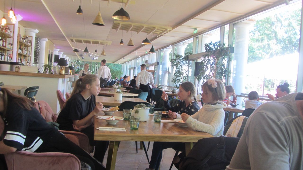 Įpusėjus kelionei, vaikų laukė pietūs Druskininkų restorane „Kolonada“. Pietūs buvo labai ištaigingi. Nepavyko net visko suvalgyti, bet desertą suvalgė visi, nes tai buvo neįtikėtino skonio ledai su vyšnių džemu. O kokie gi vaikai jų nemėgsta.