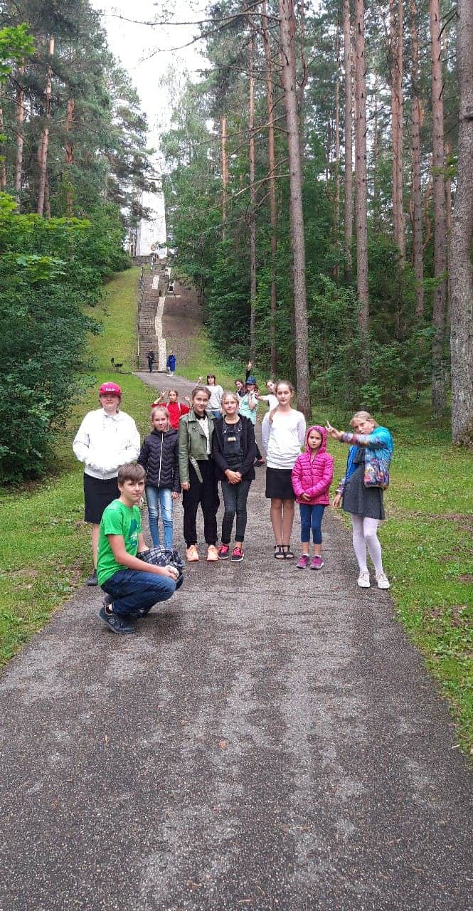 Grįždami namo,kol dar nesutemo, spėjom aplankyti ,,Laimės žiburį‘‘- rašytojo J. Biliūno kapą, o užsukę į Kavarską atsigaivinome ir namo parsivežėm Šv. Jono Krikštytojo šaltinio vandens.