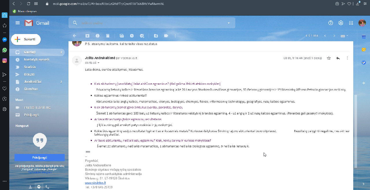 2. Ačiū, kad paviešinote ne tik mokinius, bet ir jų mokytojus. Žinosiu, ko prašyti paruošt mano vaikus egzaminams