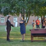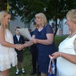 Po mišių visi pasuko į mokyklą. Vidiniame jos kieme, medžių paunksmėje vyko iškilmingas atestatų įteikimas.