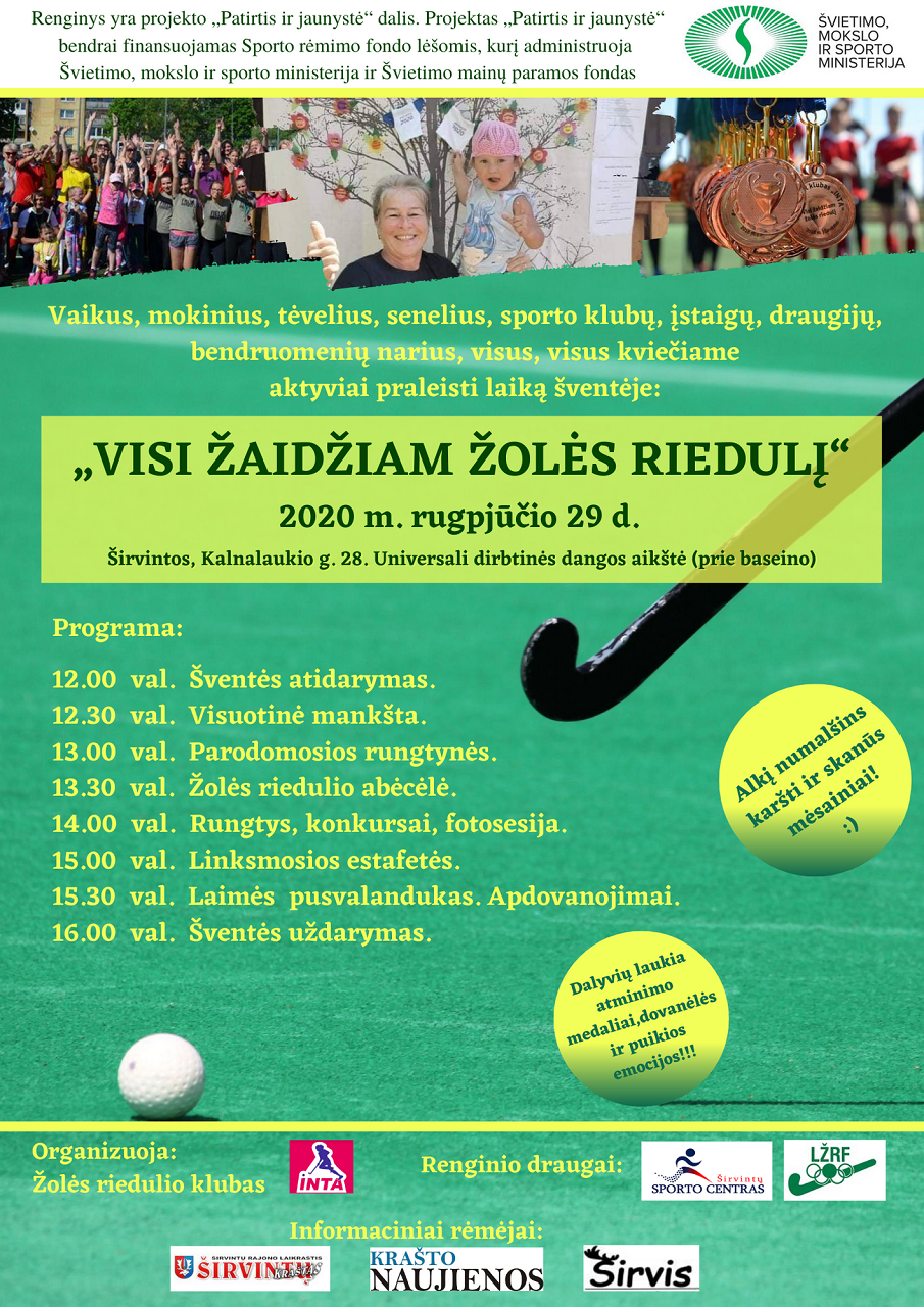 Rugpjūčio 29 d. Širvintų žolės riedulio klubas „INTA“ visus vaikus, tėvelius, senelius, sporto klubų, įstaigų, draugijų, bendruomenių narius, visus, visus vėl kviečia į šventę „Visi žaidžiam žolės riedulį“!