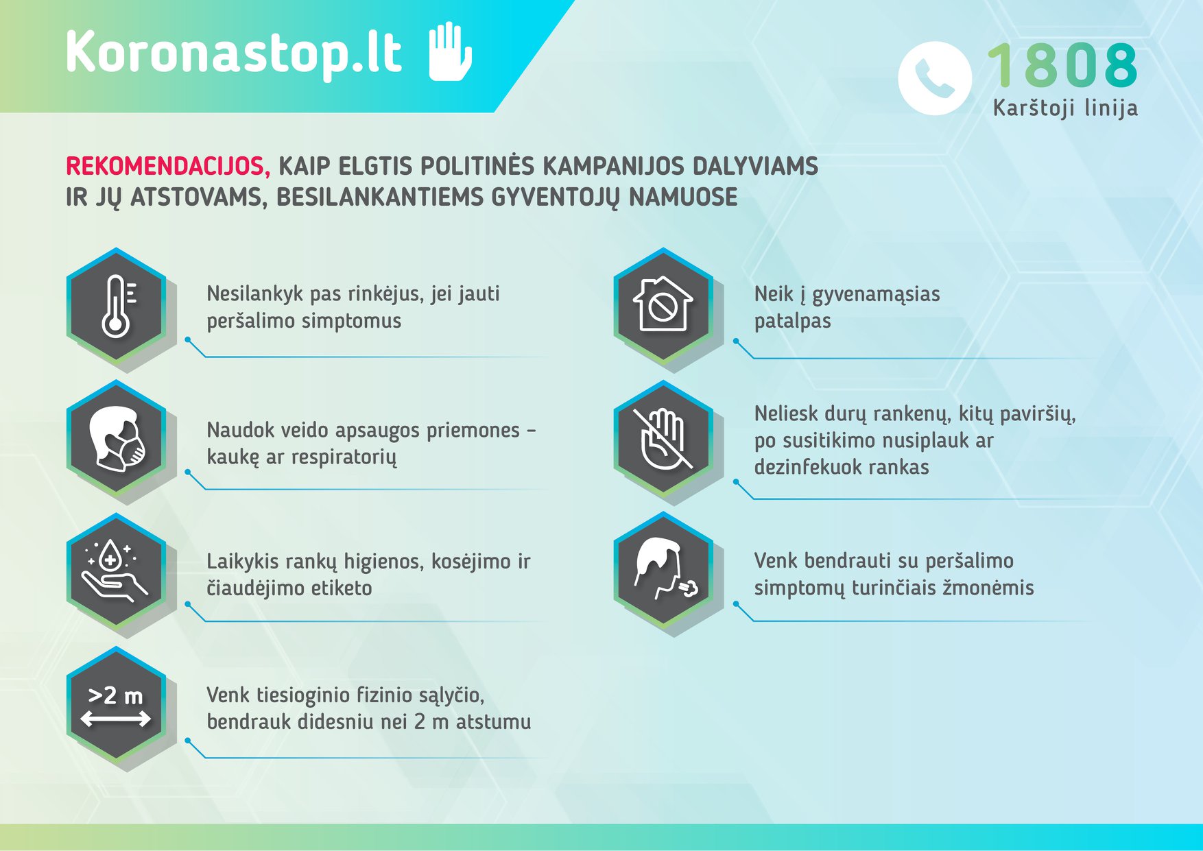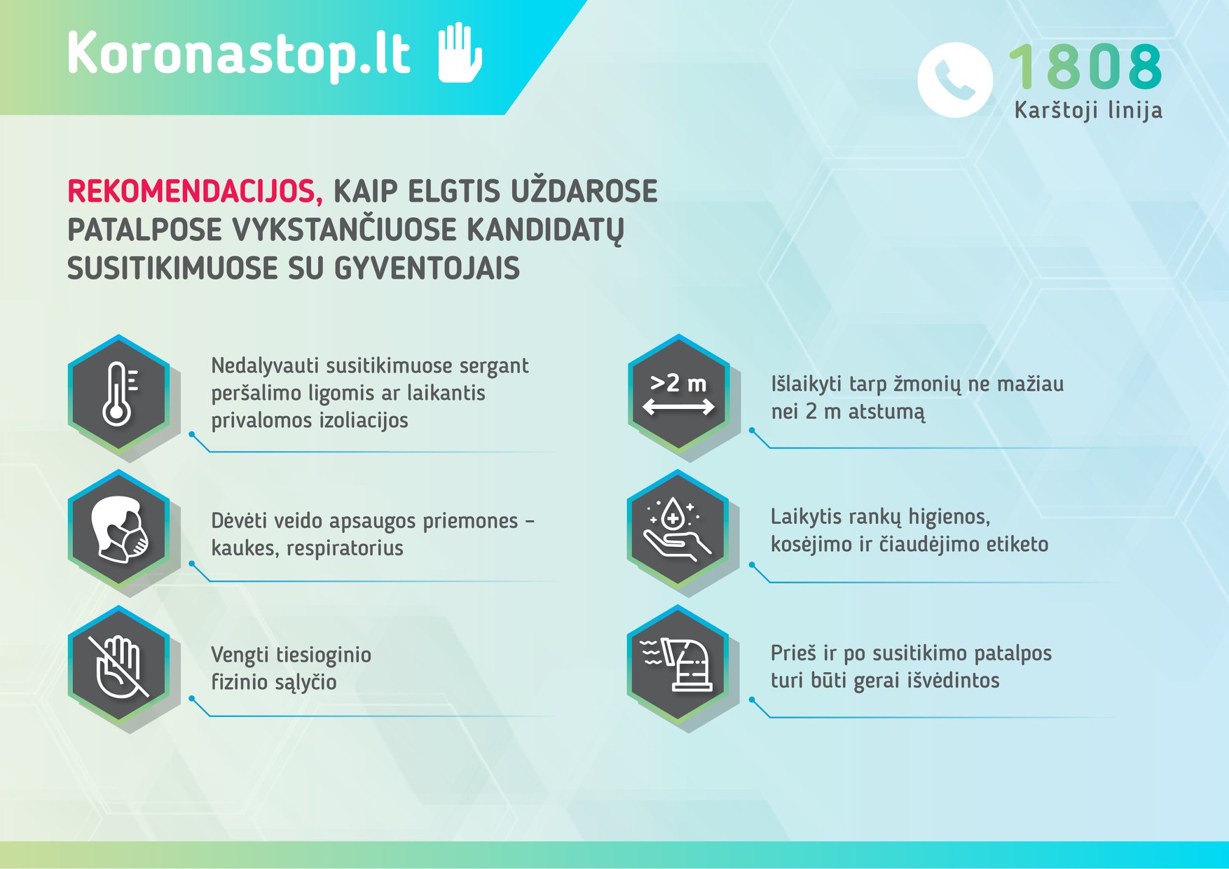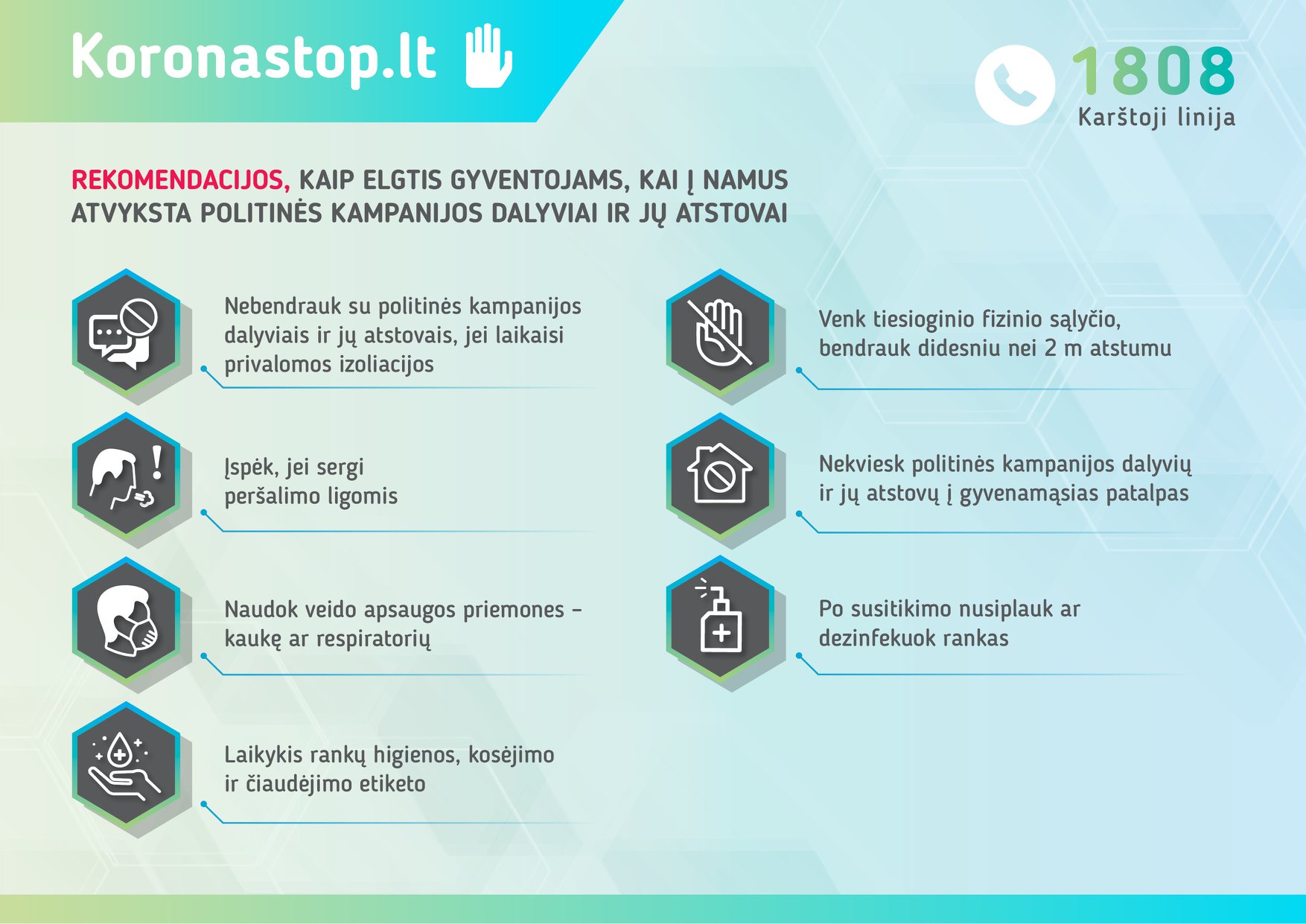SAM, ruošdamasi artėjančių rinkimų periodui ir siekdama apsaugoti Lietuvos gyventojus nuo galimo koronaviruso plitimo, parengė rekomendacijas, kaip elgtis agitacijos laikotarpiu.