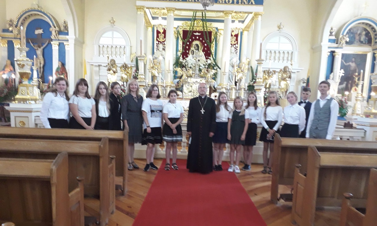 Po Šv. Mišių „Mykoliukai“ įsiamžino nuotraukoje su Jo Ekscelencija Kaišiadorių vyskupu Jonu Ivanausku.