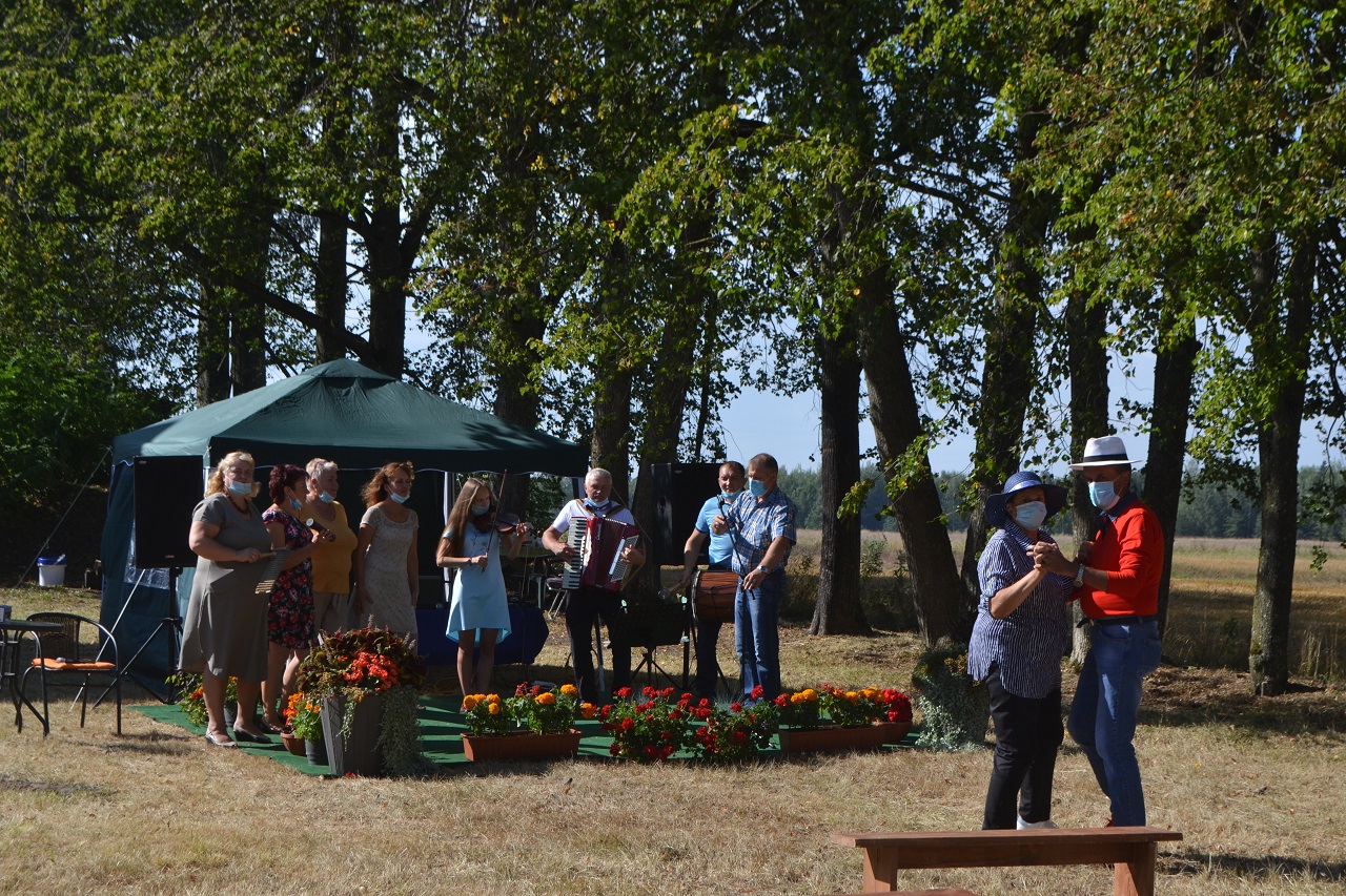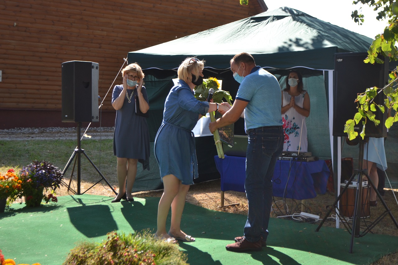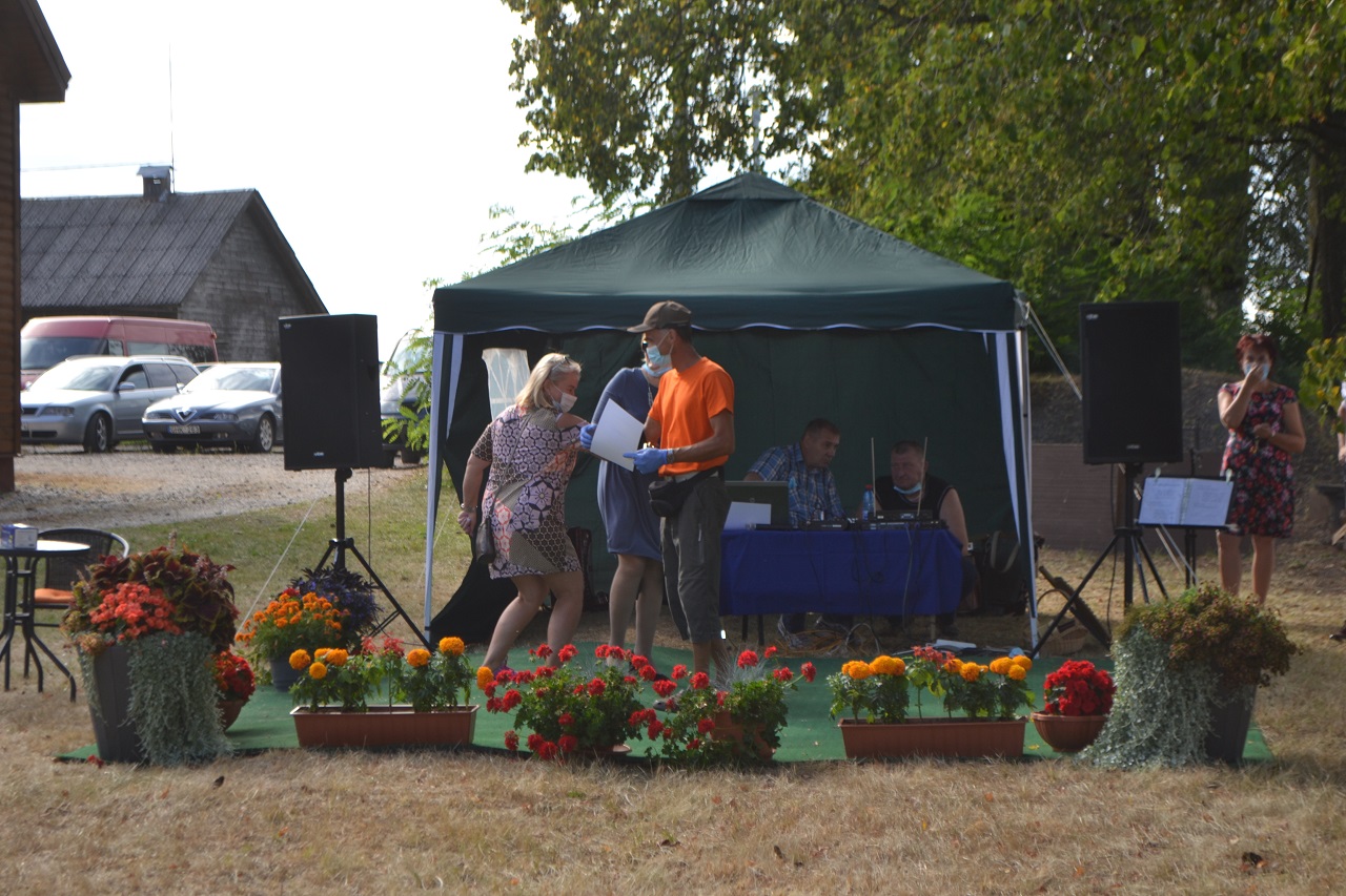 Avižonių kaimo kapela muzikos garsais sukvietė visus arčiau scenos. Bendruomenės pirmininkė Danguolė Lapinskienė praneša bendruomenės narių sprendimą. Jai atsistatydinus iš pareigų bendruomenės pirmininku išrinktas Vidmantas Mateika (apie tai jau rašėme https://www.krastozinios.lt/2020/08/24/04/49/avizoniu-kaimo-bendruomenes-pirmininku-tapo-vidmantas-mateika/).