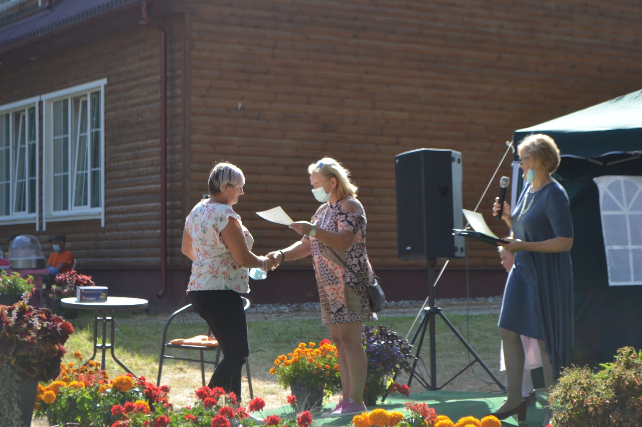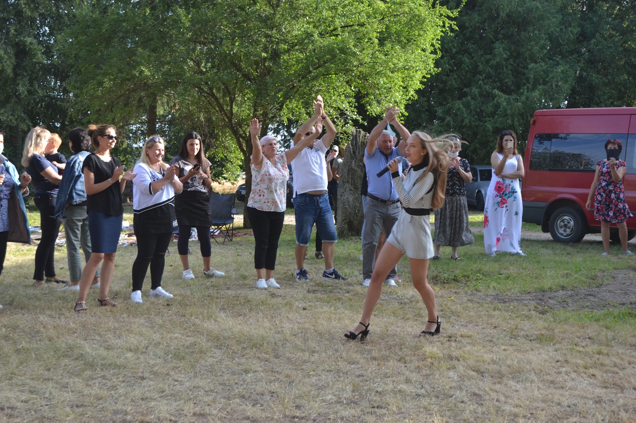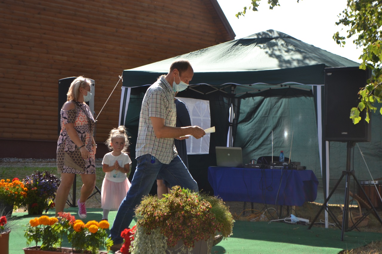 Avižonių kaimo kapela muzikos garsais sukvietė visus arčiau scenos. Bendruomenės pirmininkė Danguolė Lapinskienė praneša bendruomenės narių sprendimą. Jai atsistatydinus iš pareigų bendruomenės pirmininku išrinktas Vidmantas Mateika (apie tai jau rašėme https://www.krastozinios.lt/2020/08/24/04/49/avizoniu-kaimo-bendruomenes-pirmininku-tapo-vidmantas-mateika/).