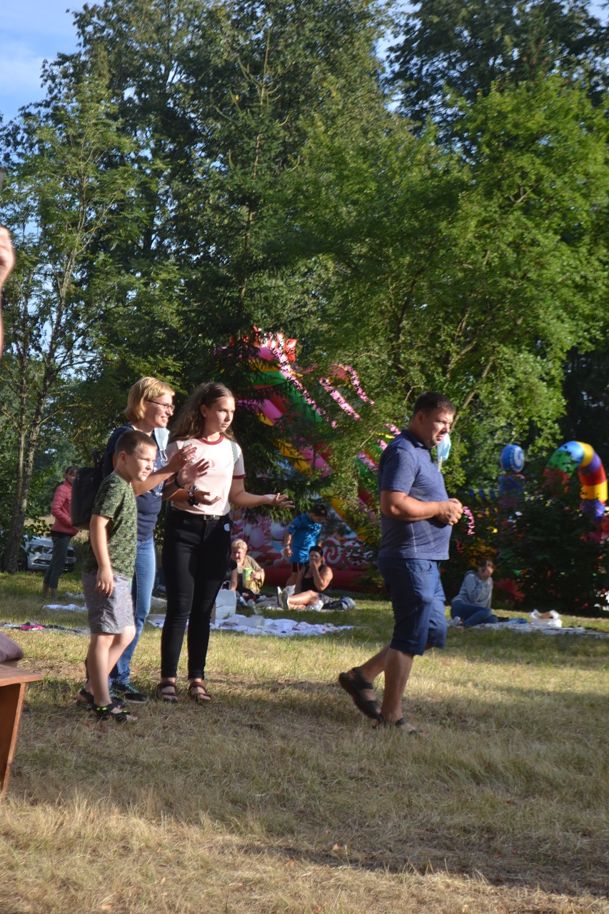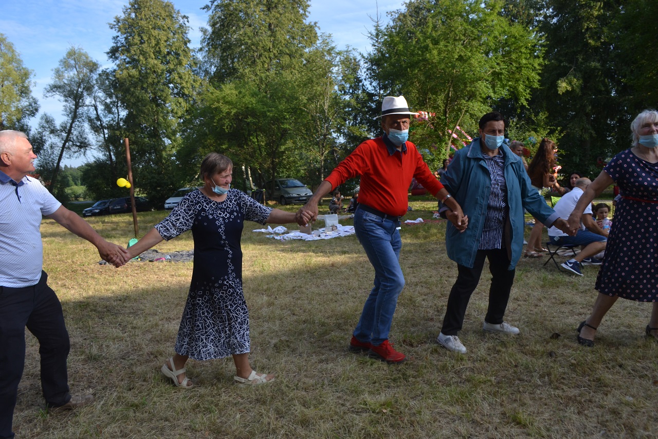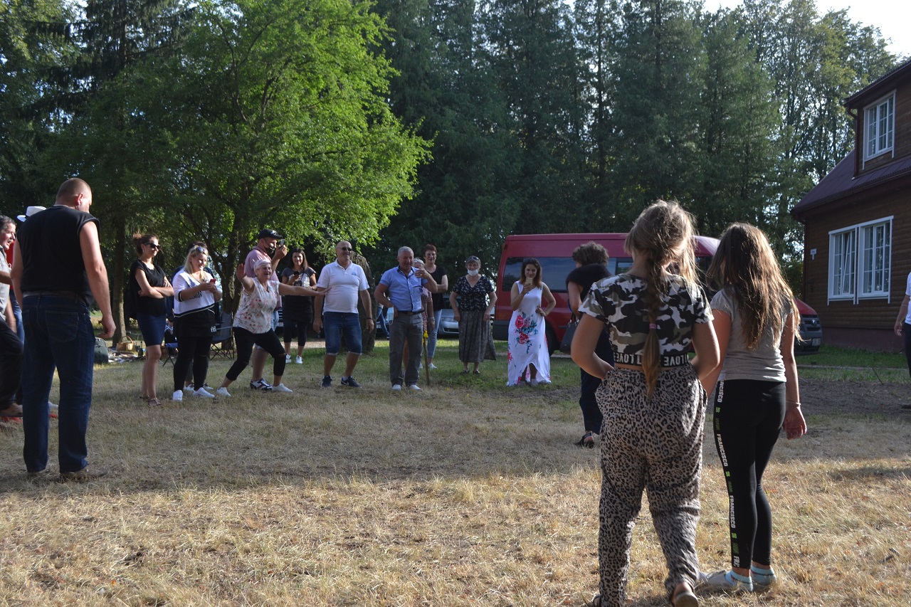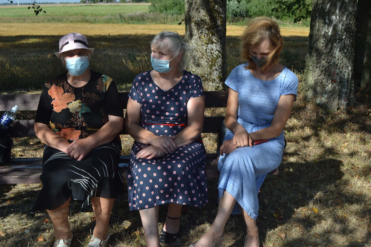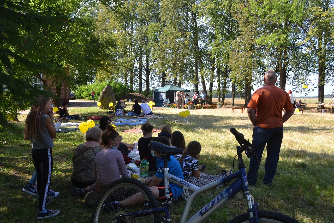 Šeimos, draugai, kaimynai pasitiesė paklotus ir įsitaisė čia pat pievutėje. Vyresni mieliau rinkosi suoliukus pavėsyje. Čia močiutės dalijosi prisiminimais apie jaunystę, kalbėjo apie kaimynus. Kartu jos dalijosi receptais ir aptarė, kur geriausia pirkti mėsą. Ir visos kartu džiaugėsi, kad vienas anūkai, kitas vaikai į šventę atvežė, tad šios galinčios pasikalbėti.