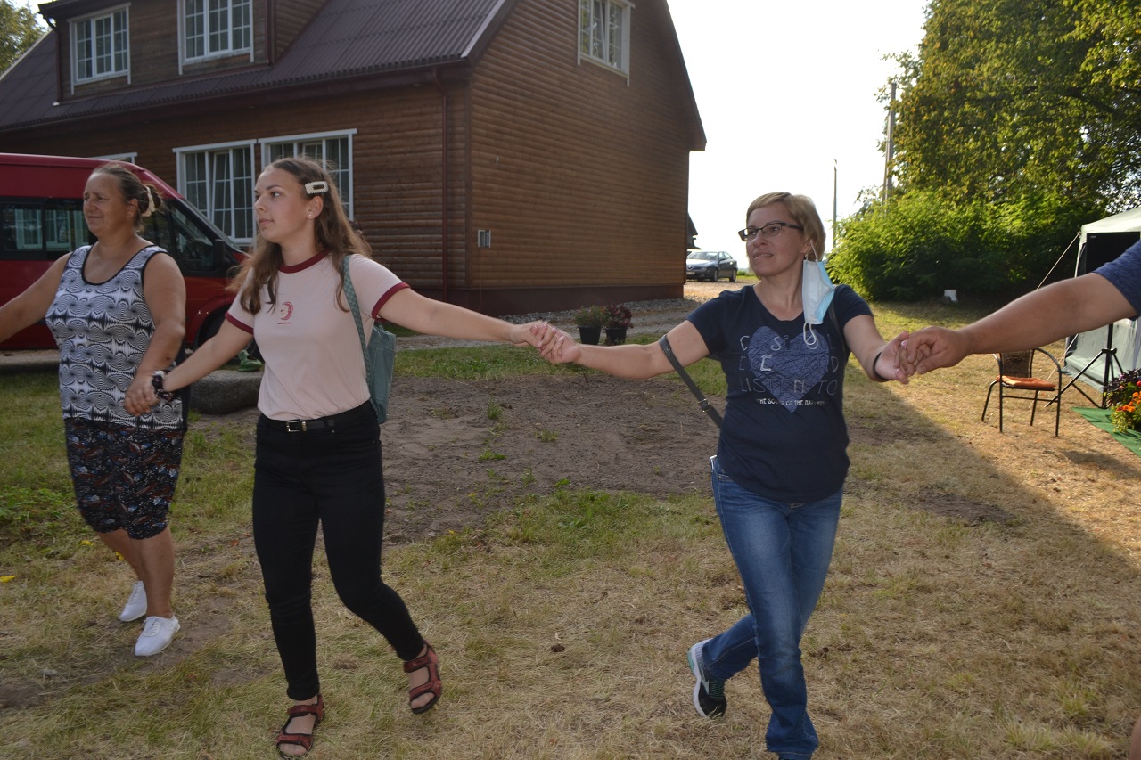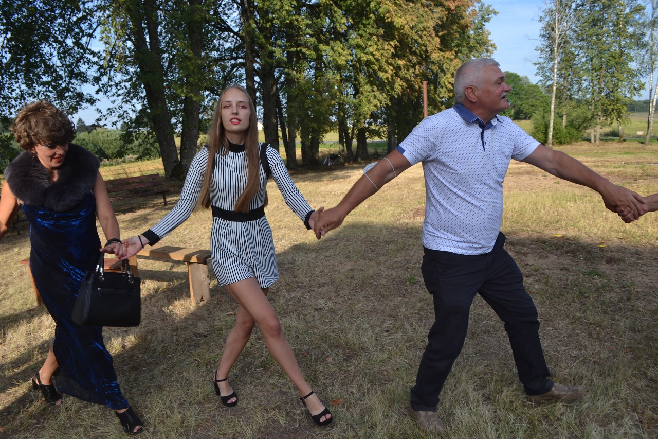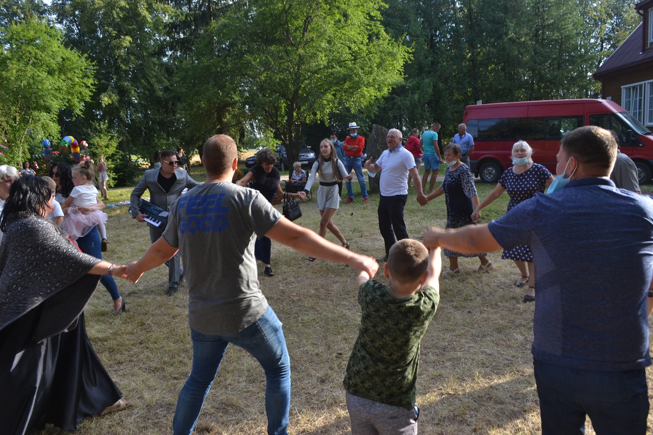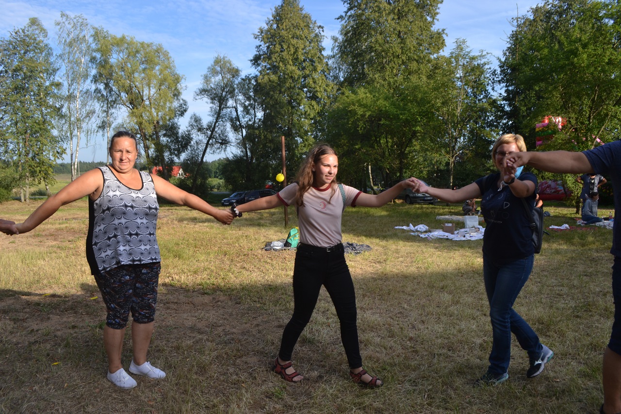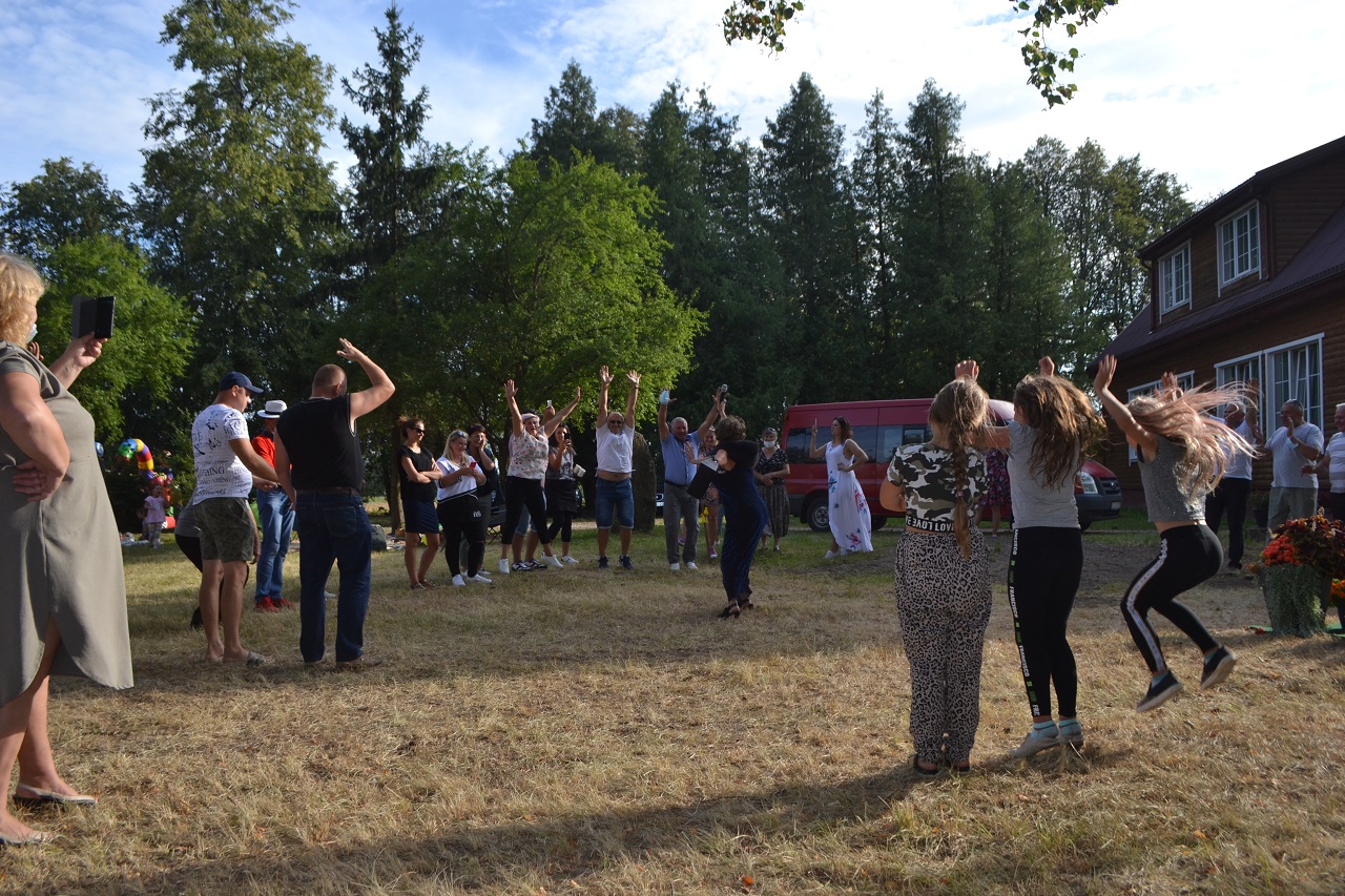 Šeimos, draugai, kaimynai pasitiesė paklotus ir įsitaisė čia pat pievutėje. Vyresni mieliau rinkosi suoliukus pavėsyje. Čia močiutės dalijosi prisiminimais apie jaunystę, kalbėjo apie kaimynus. Kartu jos dalijosi receptais ir aptarė, kur geriausia pirkti mėsą. Ir visos kartu džiaugėsi, kad vienas anūkai, kitas vaikai į šventę atvežė, tad šios galinčios pasikalbėti.