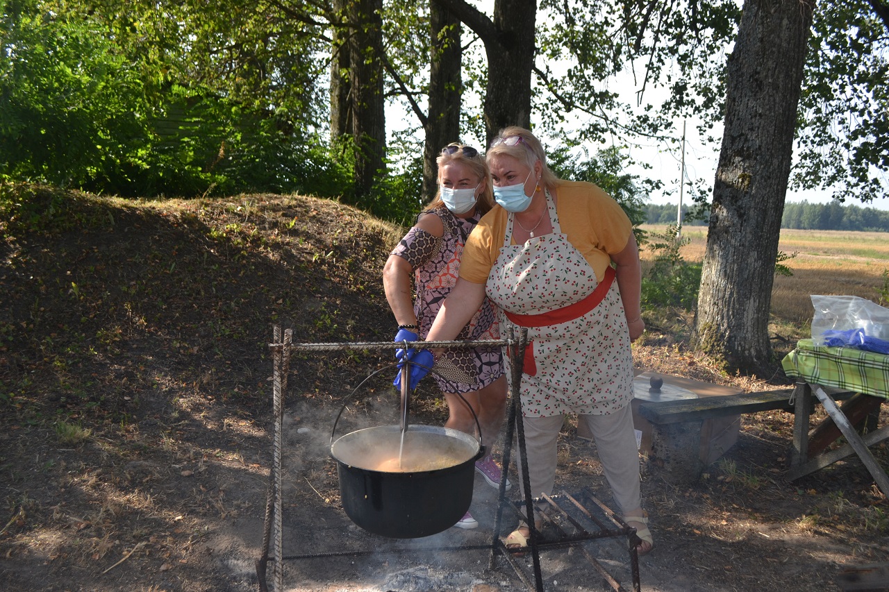 Bendruomenės šeimininkės išvirė didžiulį puodą gardžios košės, pritepė sumuštinių. O jau pyragų ir kitų skanėstų kiek būta. Vaišių pakako visiems.