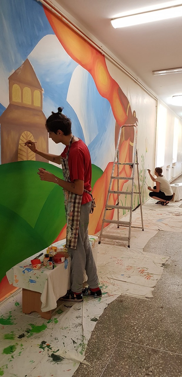 Mokiniai mokykloje nori jaustis jaukiai, įdomiai praleisti laiką pertraukų metu. Musninkų gimnazijoje mokiniai patys imasi veiksmų ir drauge kuria jaukesnę ir įdomesnę mokyklos aplinką. Gimnazistų Danieliaus Tamašausko, Kamilės Vigraitytės ir 8 klasės mokinės Urtės Tamašauskaitės iniciatyva šiemet gimnazijoje įgyvendinamas projektas „Kurk, bendrauk ir skleisk!” Bendradarbiaujant įvairių klasių mokiniams ir mokytojams projekto metu planuojama sukurti žaismingesnę aplinką įvairiose mokyklos erdvėse. Projektas finansuojamas Širvintų rajono savivaldybės lėšomis, kurios skirtos jaunimo iniciatyvoms. Pirmas darbas jau įgyvendintas – per mokinių atostogas, prieš pat mokslo metų pradžią, pagal Danieliaus Tamašausko eskizą apipavidalinta viena iš mokyklos sienų. Šauni jaunimo komanda – Danielius Tamašauskas, Kamilė Vigraitytė, Karina Milinavičiūtė ir Rugilė Tuškevičiūtė – savaitę laiko iki vėlumos dirbo, kad rugsėjo 1 dienai darbas būtų užbaigtas.