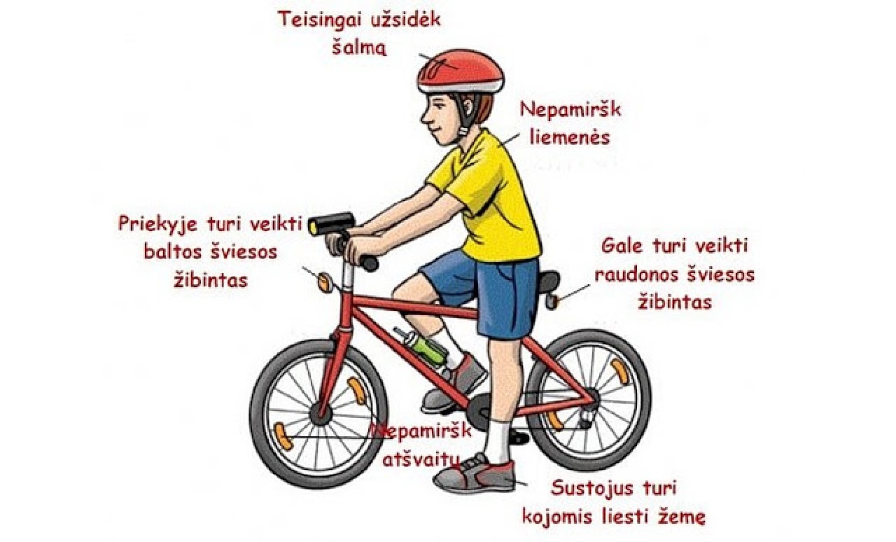 Nupirkote vaikui dviratį, tai   kartu su juo privalote nupirkti ir dviratininko šalmą! Kelių eismo taisyklės numato, kad keliu dviračiais važiuojantys vaikai (iki 18 metų) PRIVALO dėvėti šalmą. Tėvai pamiršta ir tai, kad dviračio kėdutėje vežamas vaikas taip pat privalo būti su šalmu.  Taisyklių nesilaikymas prilygsta vaiko nepriežiūrai. Vaikų iki 14 metų (išskyrus 12 metų, turinčius dviratininkų pažymėjimus) gatvėse ir keliuose su dviračiu apskritai neturėtų būti – jie gali važinėtis tik kieme, stadione, miško takuose, gyvenamosios zonos teritorijoje, dviračių takuose. Pagal Kelių eismo taisykles vyresni nei 8 metų vaikai gali važiuoti važiuojamąja kelio dalimi tik prižiūrimi suaugusiųjų.