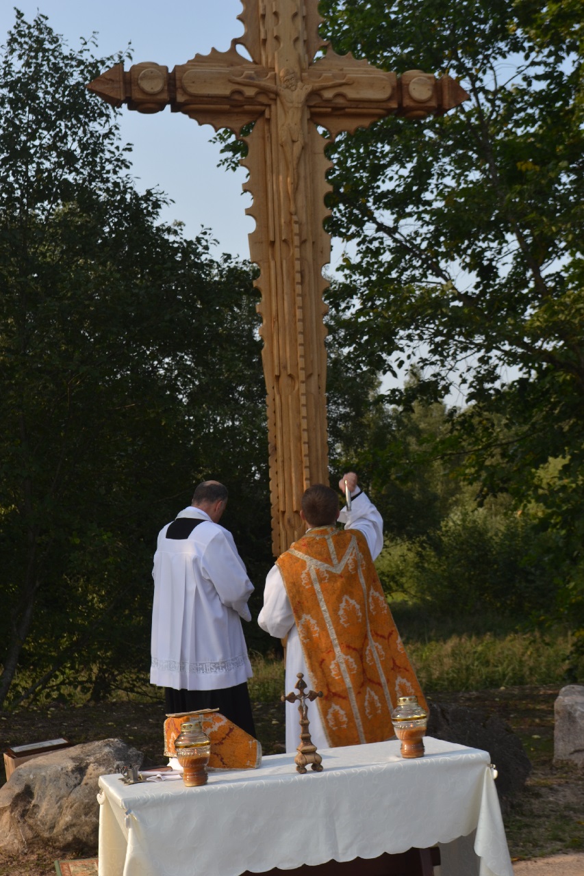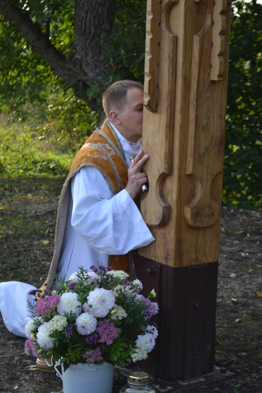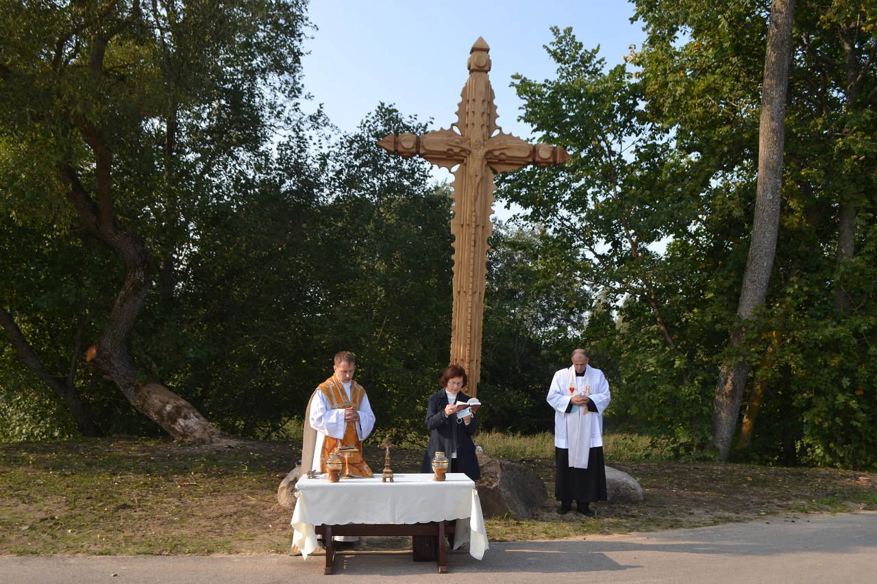 Plikiškių kaimo centrinėje sankryžoje, ant Musės upės kranto stojo naujas ąžuolinis kryžius.