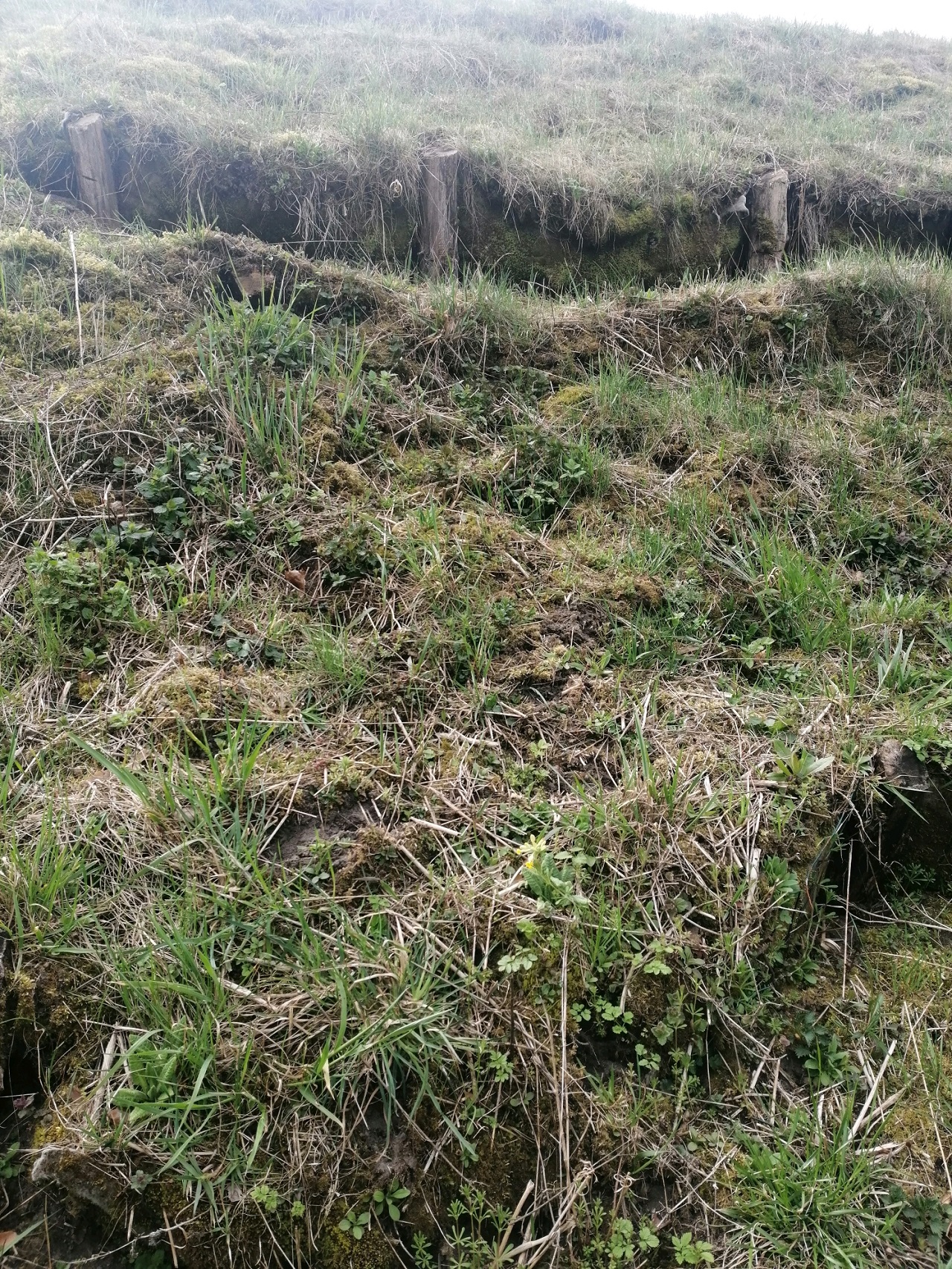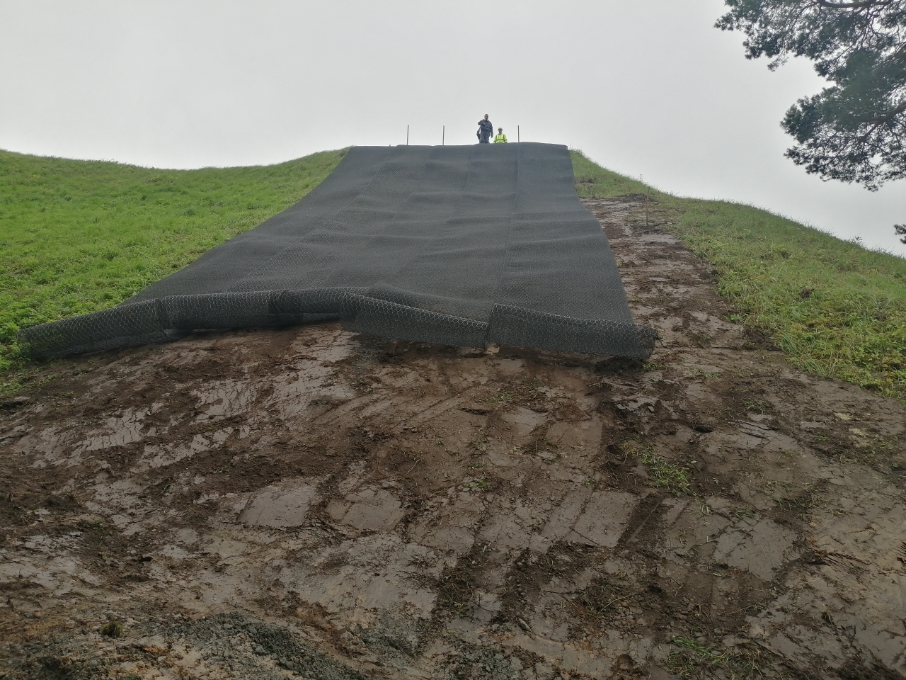 Pagal parengtą neatidėliotinų avarijos grėsmės šalinimo darbų aprašą (projekto vadovas arch. Rimas Grigas) buvo įgyvendintos šios laikinosios priemonės (iš esmės analogiškos panaudotoms ir ir pasiteisinusioms, prispaudžiant slenkantį paviršinį gruntą Vilniuje, Gedimino kalno šlaituose 2018-2019 m.): išlygintas besideformuojančio šiaurinio šlaito paviršius, įrengiant drenažą ir konstrukcinius geotinklus, įtvirtinant juo metaliniais inkarais iki 3-4 metrų gylio, buvo atkurta žolinė danga iš vietinės velėnos, sauganti šlaitą nuo paviršinės erozijos bei sutvarkyti priėjimo (privažiavimo) takai.
