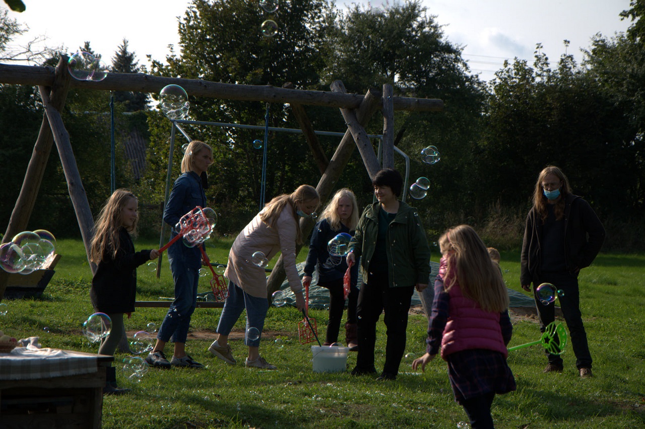 Visą šeštadienio popietę buvo organizuojamos kūrybinės dirbtuvėlės, kuriose vaikai piešė obuolius, meistriškai pūtė muilo burbulus, gėrėjosi gausiomis rudens gėrybėmis ir dėliojo meno kūrinius. Šiltą ir gražią šventę vainikavo asociacijos „Šeimų bendrystė“ spektaklis „Milė ir trys Gustai“ pagal Tiina Nopola, apie mergaitę Milę, kuri labai norėjo šuniuko. Šiame spektaklyje vaidina ne tik lėlės, mokytojai ir tėveliai, bet ir tikrų tikriausias šuniukas.