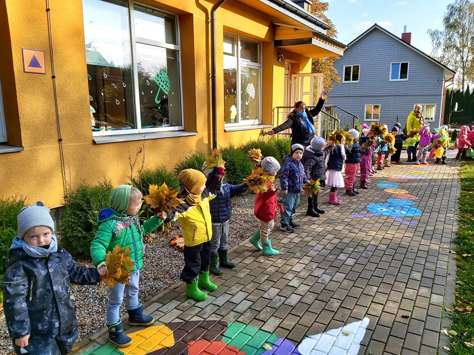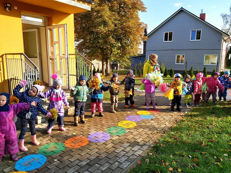 Pedagogai buvo išradingi, kūrybingi, kiekviena sugalvojo kaip smagiau ir žaismingiau apeiti darželį. Ančiukų grupės vaikai – apvažiavo darželį karietomis, Bitučių grupė – apjojo arkliukais, Drugeliai – skraidė ant šluotraižių, o mes mažiuliai – pavirtome į spalvotą kirmėliuką, kuris ramiai ir išlėto, su spalvotais kutukais apėjo savo darželiuką. Pabaigai pasveikinom darželį apjuosdami gyva grandine, draugiškai susikabinę už rankyčių, pasigrožėjome fejeverkais ir spalvotais saliutais.