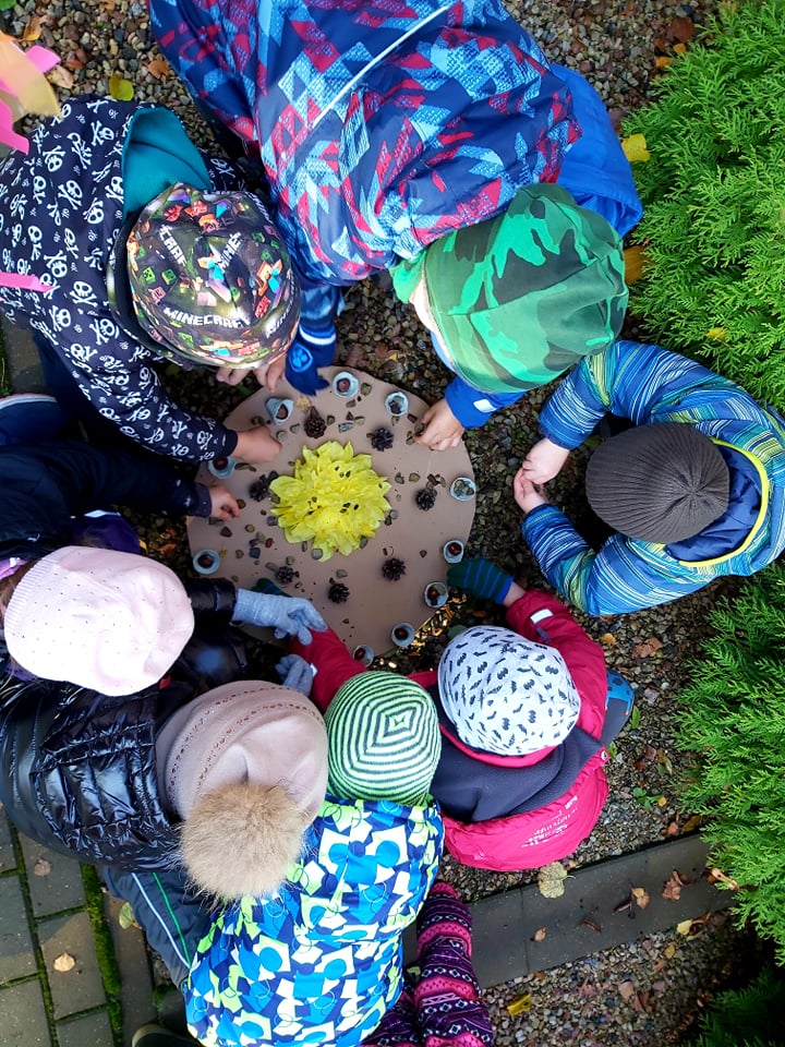 Mūsų kieme šiandien šventė! Mums šypsosi dangus, saulutė išviliojo visus vaikučius pabiručius į lauką. Šią saulėtą spalio dieną, Riešės darželis šventė gimtadienį. Kaip džiugiai, smagiai ir nekantriai vaikai ruošėsi darželio gimtadieniui. Mūsų darželiui 45 – eri metai! Vilniaus rajono Riešės vaikų darželis sukurtas Vilniaus valstybinio žirgyno. Tuo metu steigėjas buvo Lietuvos žemės ūkio ministerija. Darželis įsteigtas 1975 -09-01. Darželiui dovanojome ne tik puikią nuotaiką ir šypsenas, bet ir visi sukūrėme gimtadienio mandalas iš gamtinės medžiagos. Vaikus pasitiko iškilmingas daržovių tortas ir laukas pasipuošęs margaspalviais, kamšteliais apklijuotais skėčiais! Pagerbėme darželį apeidami aplink jį .