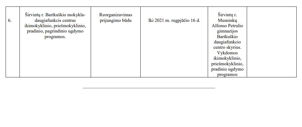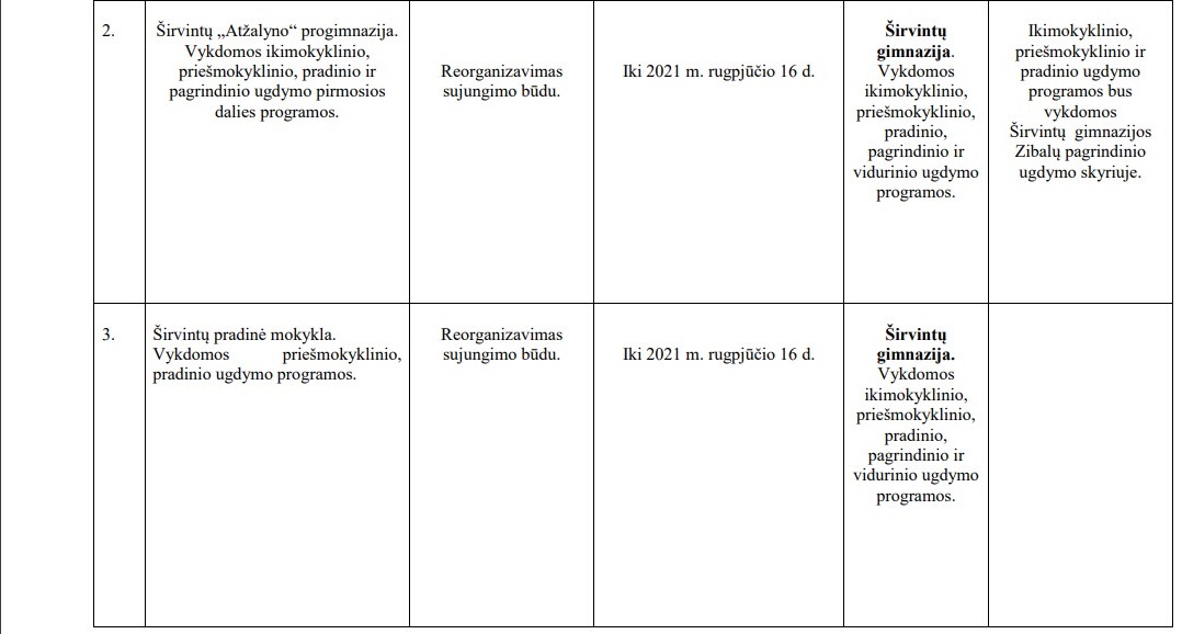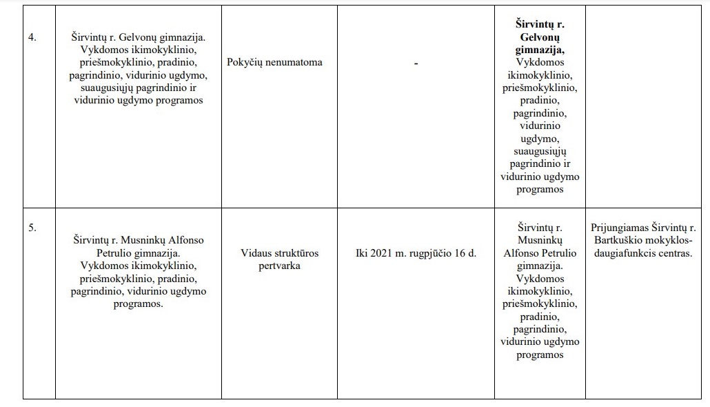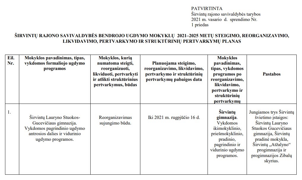 ŠIRVINTŲ RAJONO SAVIVALDYBĖS BENDROJO UGDYMO MOKYKLŲ 2021–2025 METŲ STEIGIMO, REORGANIZAVIMO, LIKVIDAVIMO, PERTVARKYMO IR STRUKTŪRINIŲ PERTVARKYMŲ PLANAS