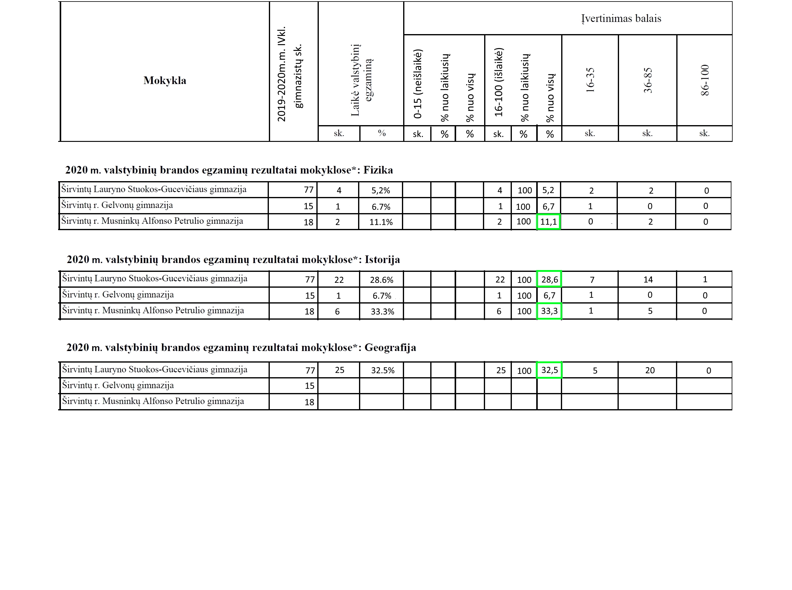Gelvonų gimnazija. Paruošė 15, išlaikė 7, tai 46,6 proc.