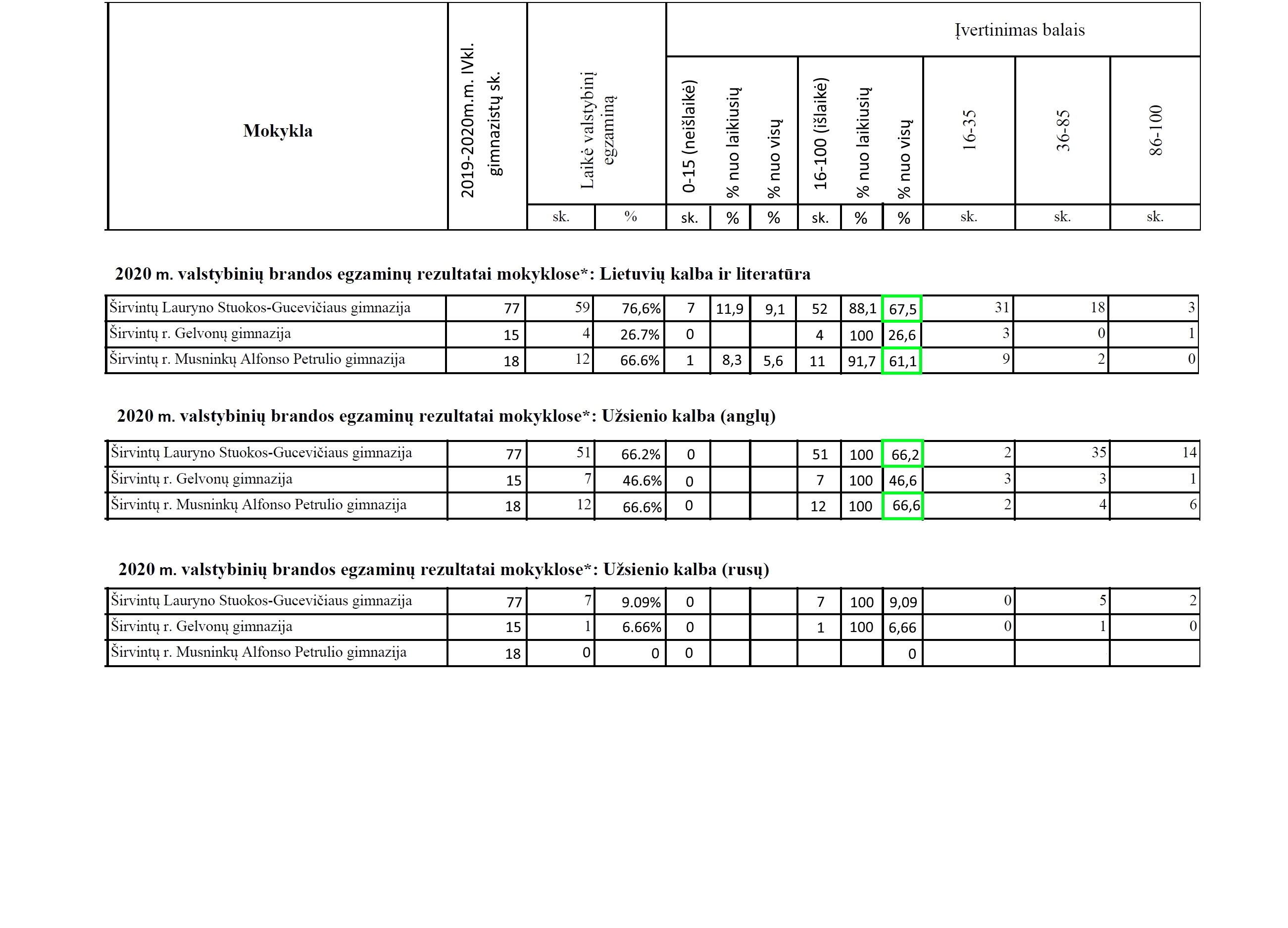 Širvintų LSG gimnazija. Paruošė 77, išlaikė 52. Tai 67,5 proc.