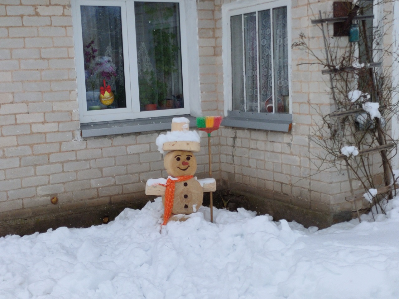 Darbštus širvintiškis juokiasi, kad pernai lipdė besmegenius, tiesa, sniego būta kur kas mažiau. Kieme, iš po sniego pūpso ir darbštaus šeimininko darbus liudija įvairios medžio figūros – nuo būdos iki medinio besmegenio. Vyras drožia medį, gamina lesyklėles, pina krepšius. Bet apie šiuos darbus rašysime vasarą, kai bus galima gyvai pabendrauti ir visus dirbinius nufotografuoti.