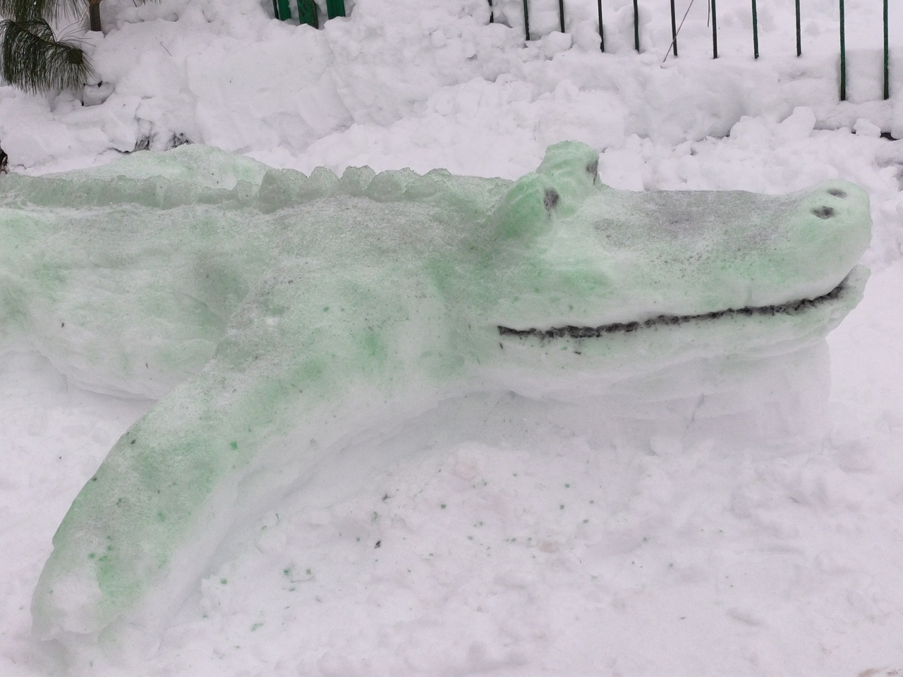 Kai vaikai buvo mokyklinukai, visada lipdydavom gyvūnus: meškutes, šunis, įvairaus dydžio besmegenius, dinozaurus. Sniego būdavo pakankamai. Miestelio vaikai ateidavo pažiūrėti.