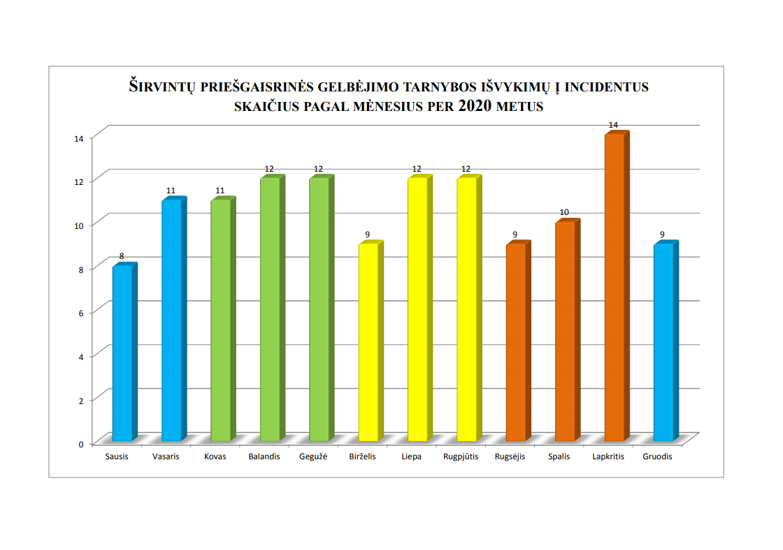 2020 metais Širvintų rajono savivaldybės teritorijoje kilo mažiausiai gaisru per trejų metų laikotarpį. Gelbėjimo darbų skaičius didžiausias per penkerius metus.