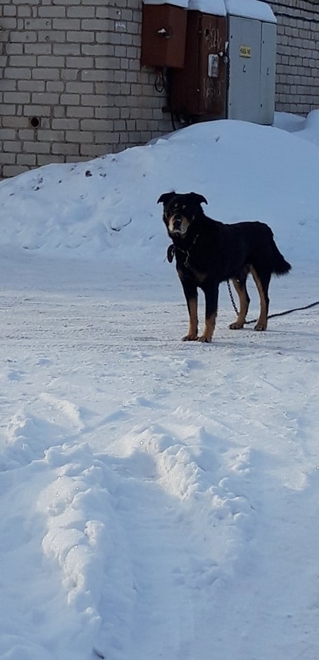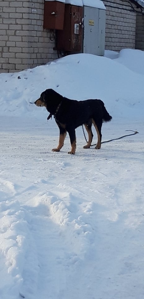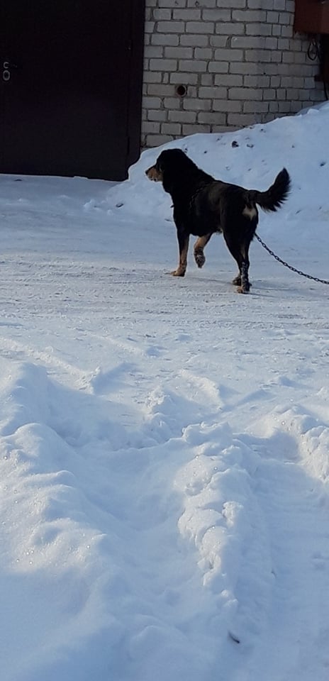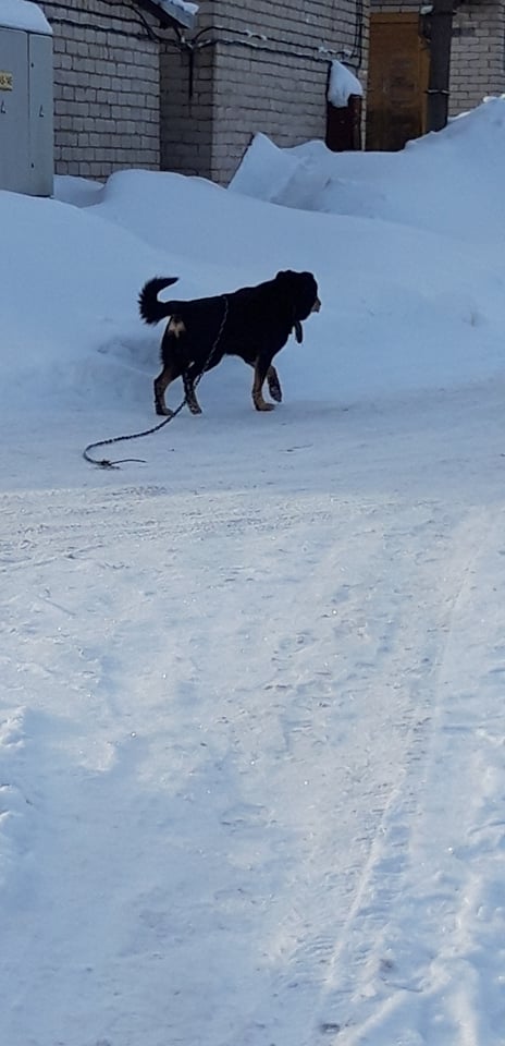 Šeimininkai atsiliepkit, o gal kas pažinsit, tai perduokit šeimininkams. Kad ir kaip bloga gyvent pririštam prie būdos, tai visgi geriau nei gulėti ant sniego po eglute.