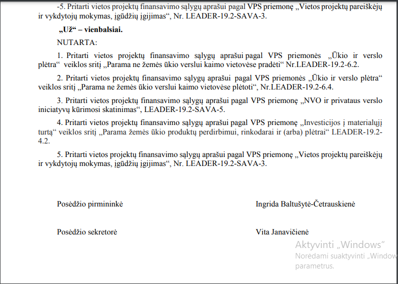 Po to VVG atlieka projektų tinkamumo vertinimą. Bet galutinį sprendimą dėl paramos skyrimo priima NMA projektų atrankos komitetas – 2020 m. kovo 2 d. buvo priimtas sprendimas skirti paramą mano projektui, sprendimas viešinamas NMA svetainėje. Jokių paslapčių. Viskas taip pat, kaip ir kitiems dalyviams.