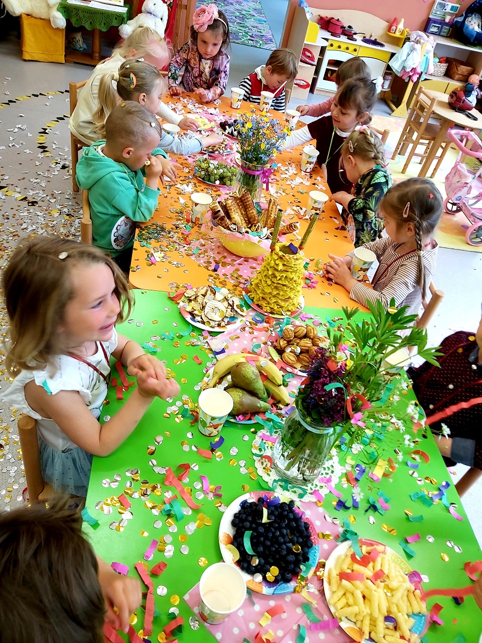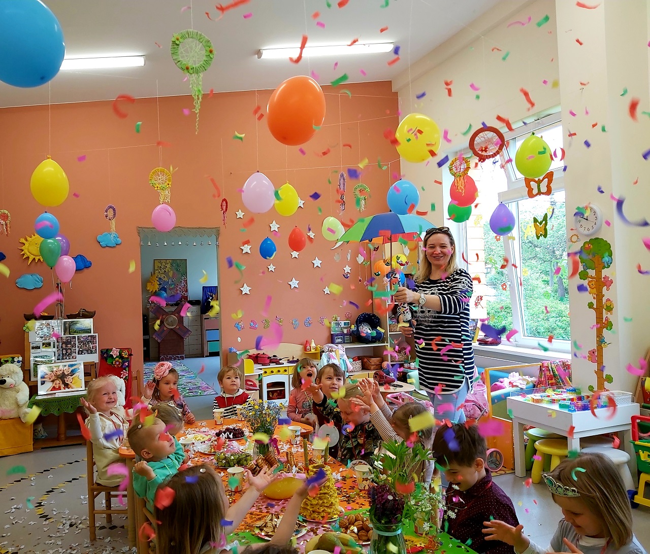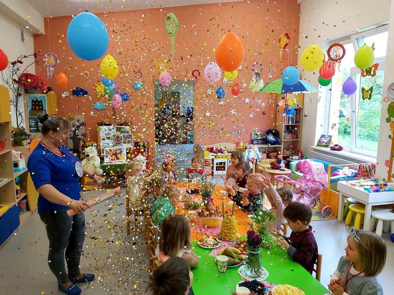 Nuo pat ryto vaikučius linksmino ir drauge žaidė jaunieji aktoriai. Kiekvienoje grupėje, lauko aikštelėse  vaikų laukė staigmenos, smagios veiklos, pramogos ir fejerverkų lietus. Vaikai ne tik pramogavo, bet ir vaišinosi ledais, kuriais pasirūpino ugdytinių tėveliai. Ši diena, tai gardumynų  – saldumynų puota, kai energijos pasikrauni visai likusiai savaitei!