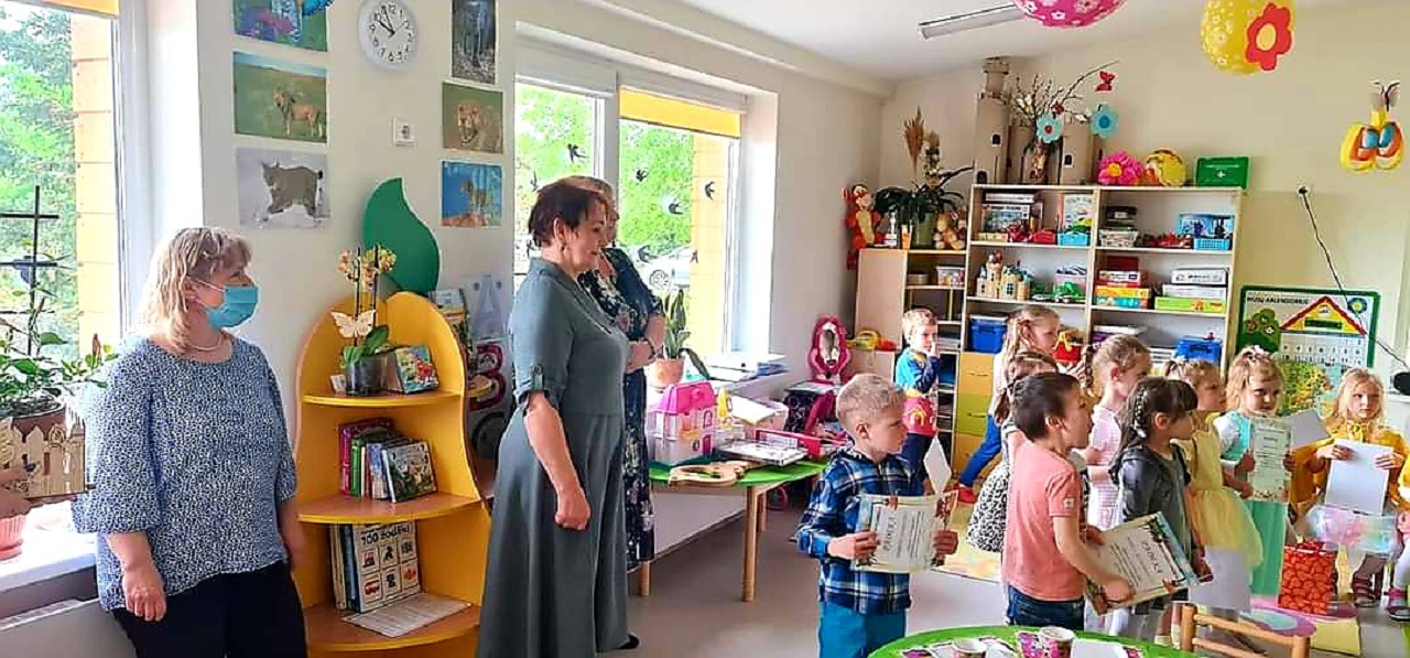 Vilniaus rajono Riešės vaikų darželyje netrūko linksmybių, šėlionių ir žaidimų.  Čia aidėjo ne tik vaikų juokas ir muzika,  bet ir skambėjo paskutinis varpelis mažiesiems išleistuvininkams.