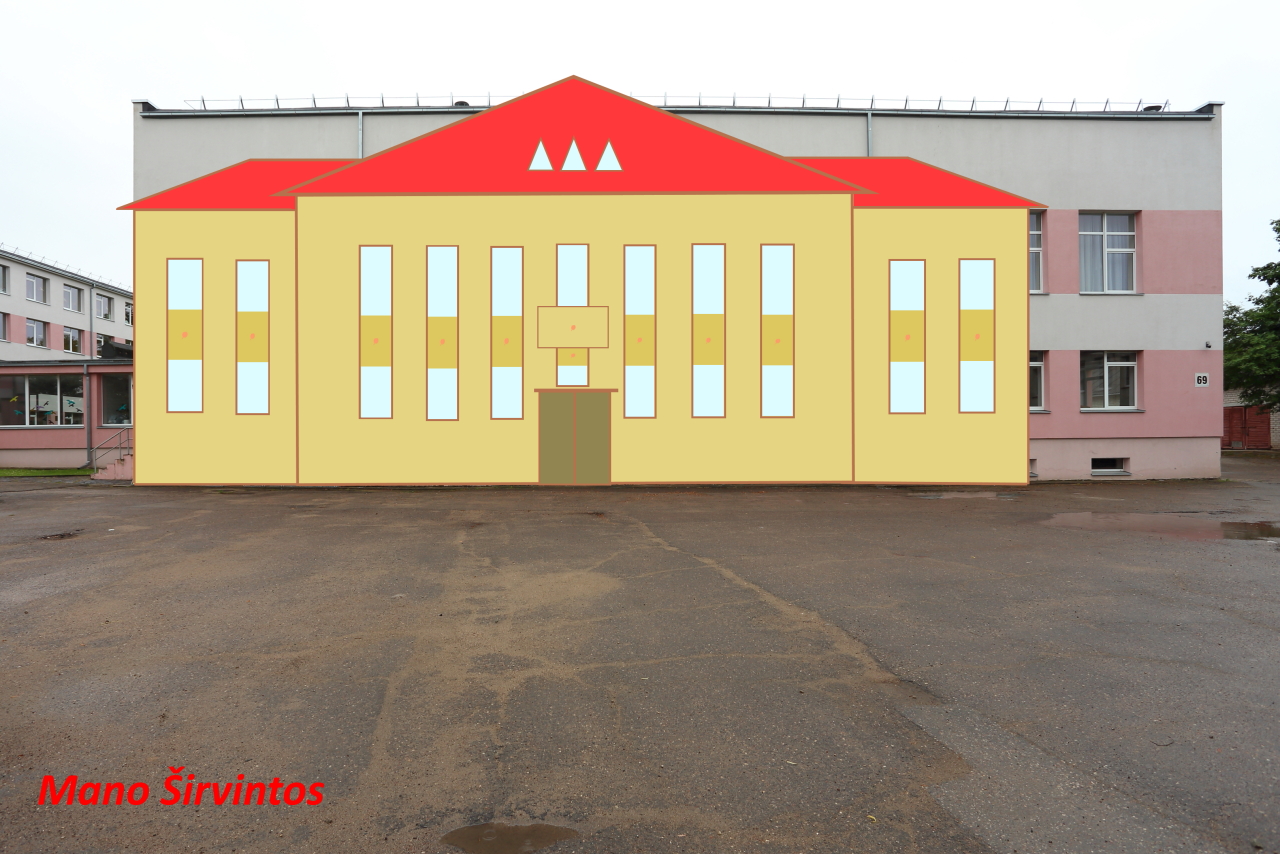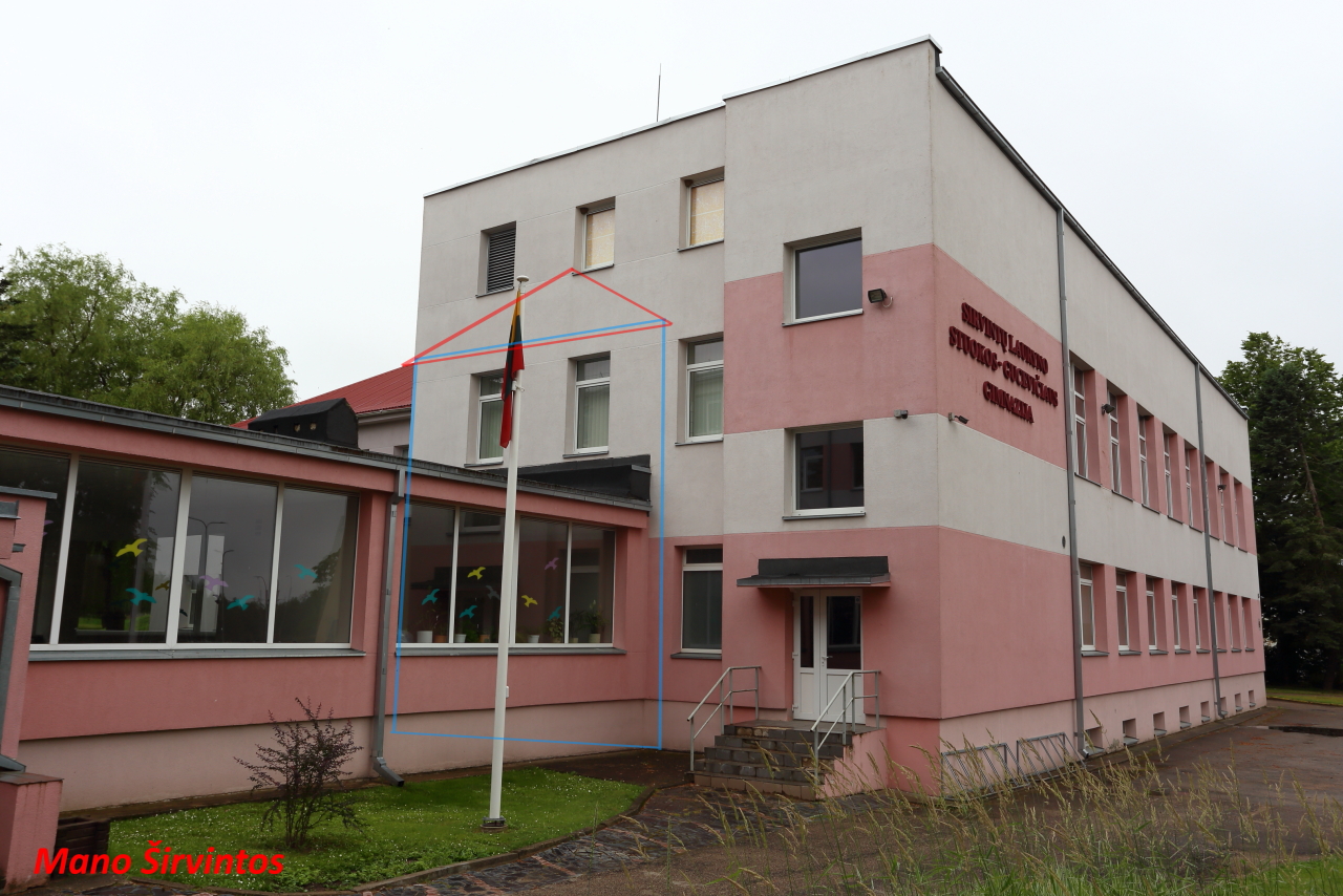 O dabar pasižiūrėkite į Naujųjų Širvintų pradžios mokyklos rūmų fasadą senoje, 1939 m. nuotraukoje. Ar nieko nepastebite? Taip, tai rūmų fasadas, tik atsidūręs pastato viduje. Apie viską nuo pradžių, nubraukiant paslapties šydą.