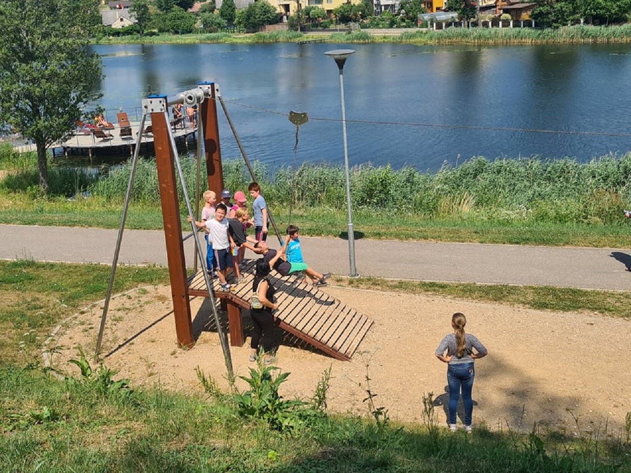 Kiekvienas norėjo būti laimingas, todėl matavosi žvejo batus, darėsi atminčiai nuotraukas. Įrengtame maudymosi paplūdimyje vaikai turėjo galimybę išsimaudyti šiltame Pastovio ežero vandenyje. Puikiai sutvarkyta maudymosi vieta. Vaikams nužymėta riba iki kurios vietos jie gali plaukti. Kitoje ežero pusėje yra įrengti laiptai, skirti sporto treniruotėms. Šalia suformuota aktyvaus poilsio zona: lauko tenisas, įleidžiamas į gruntą batutas, nerūdijančio plieno lauko čiuožykla ir įvairūs treniruokliai. Įrengtas paplūdimys, virš vandens terasa su gultais. Vaikai viską turėjo galimybę išbandyti.